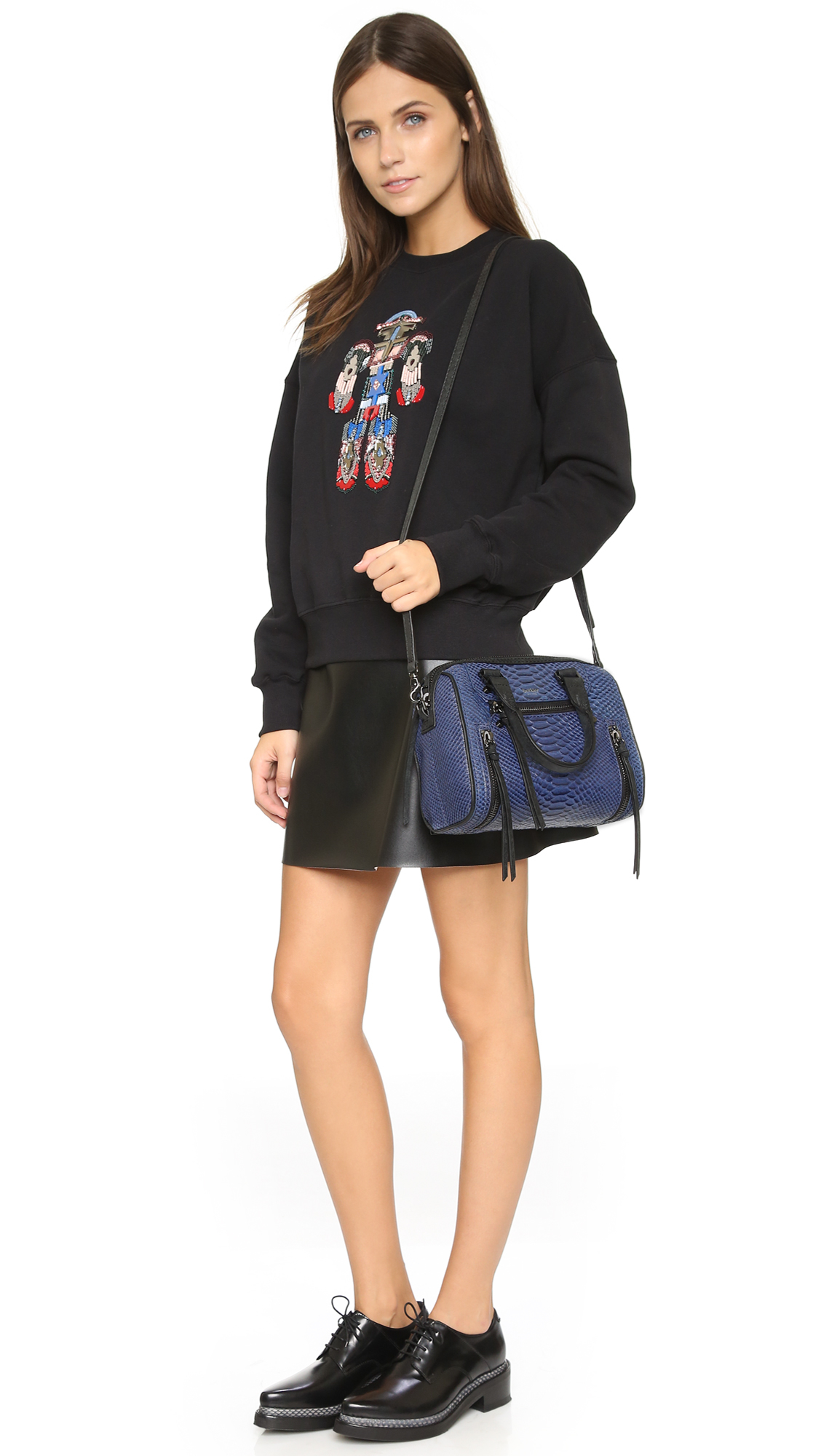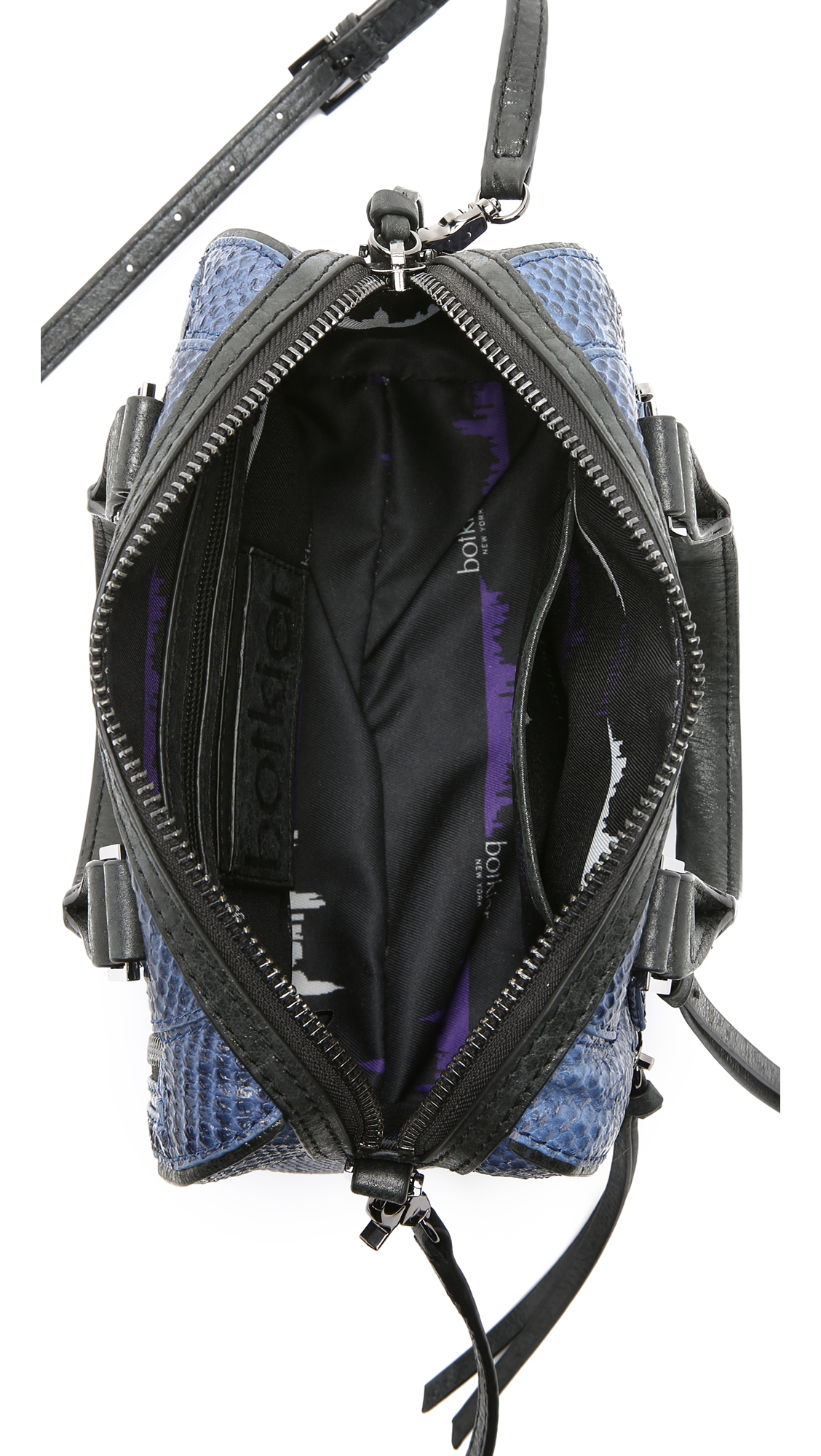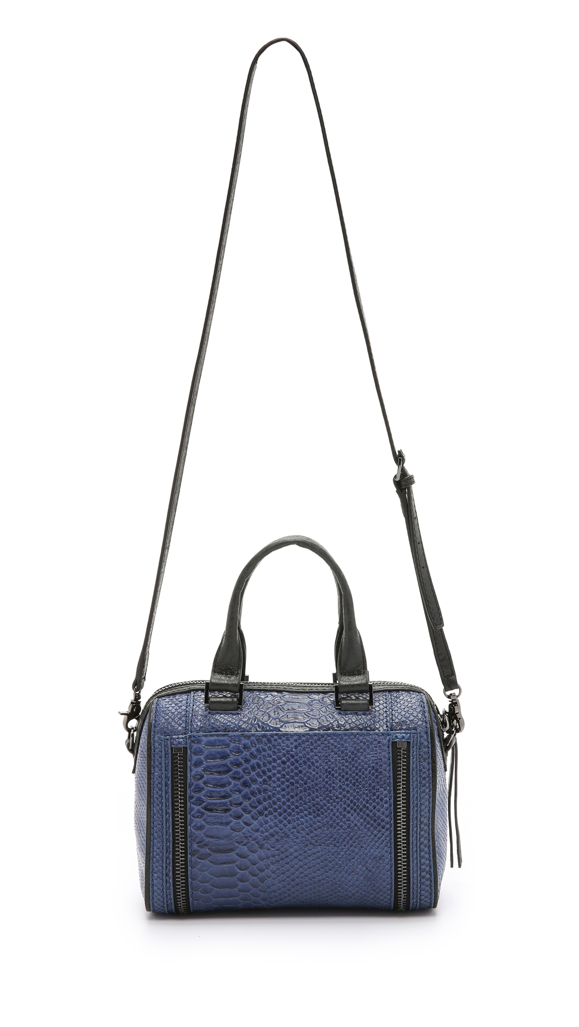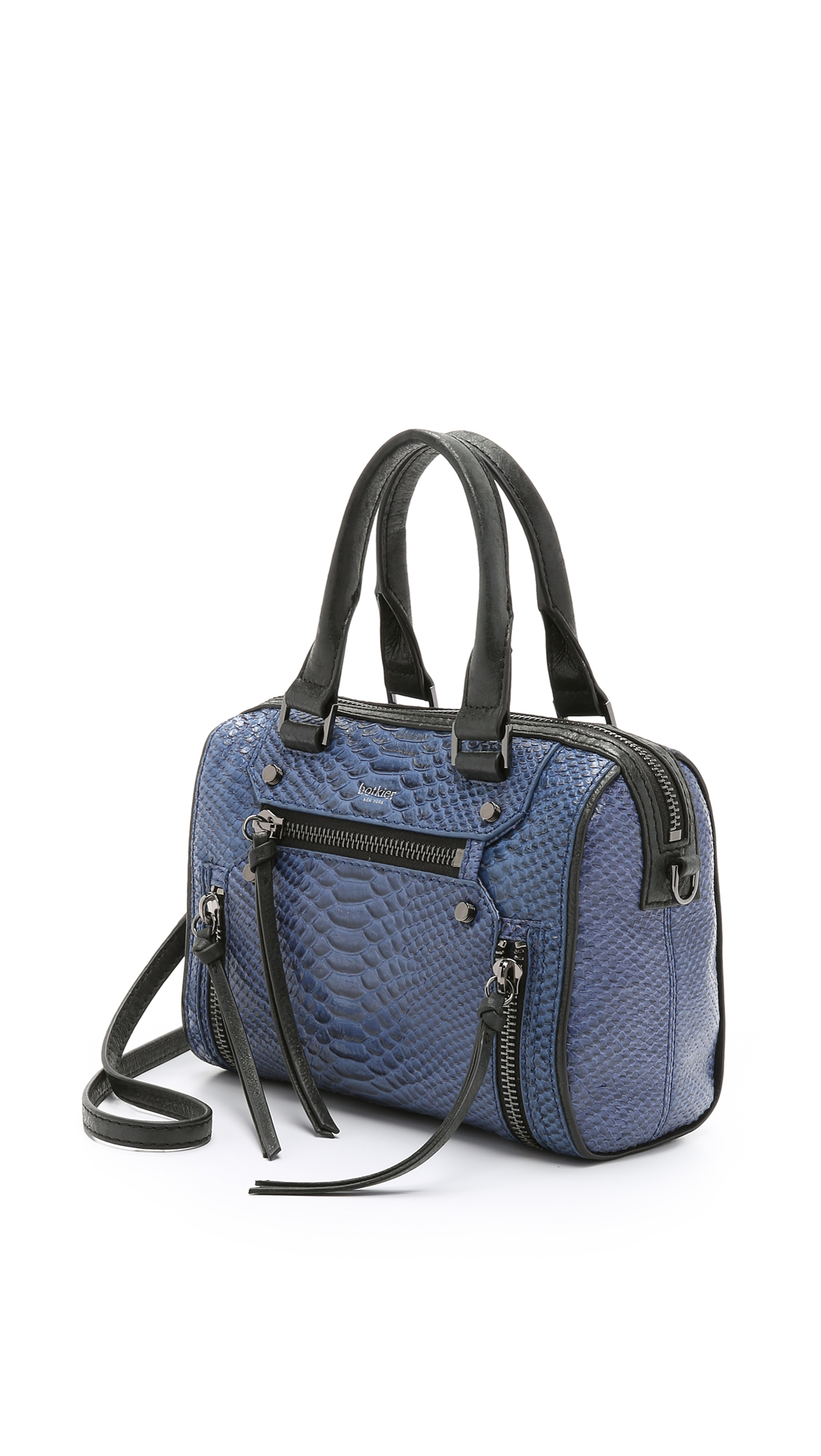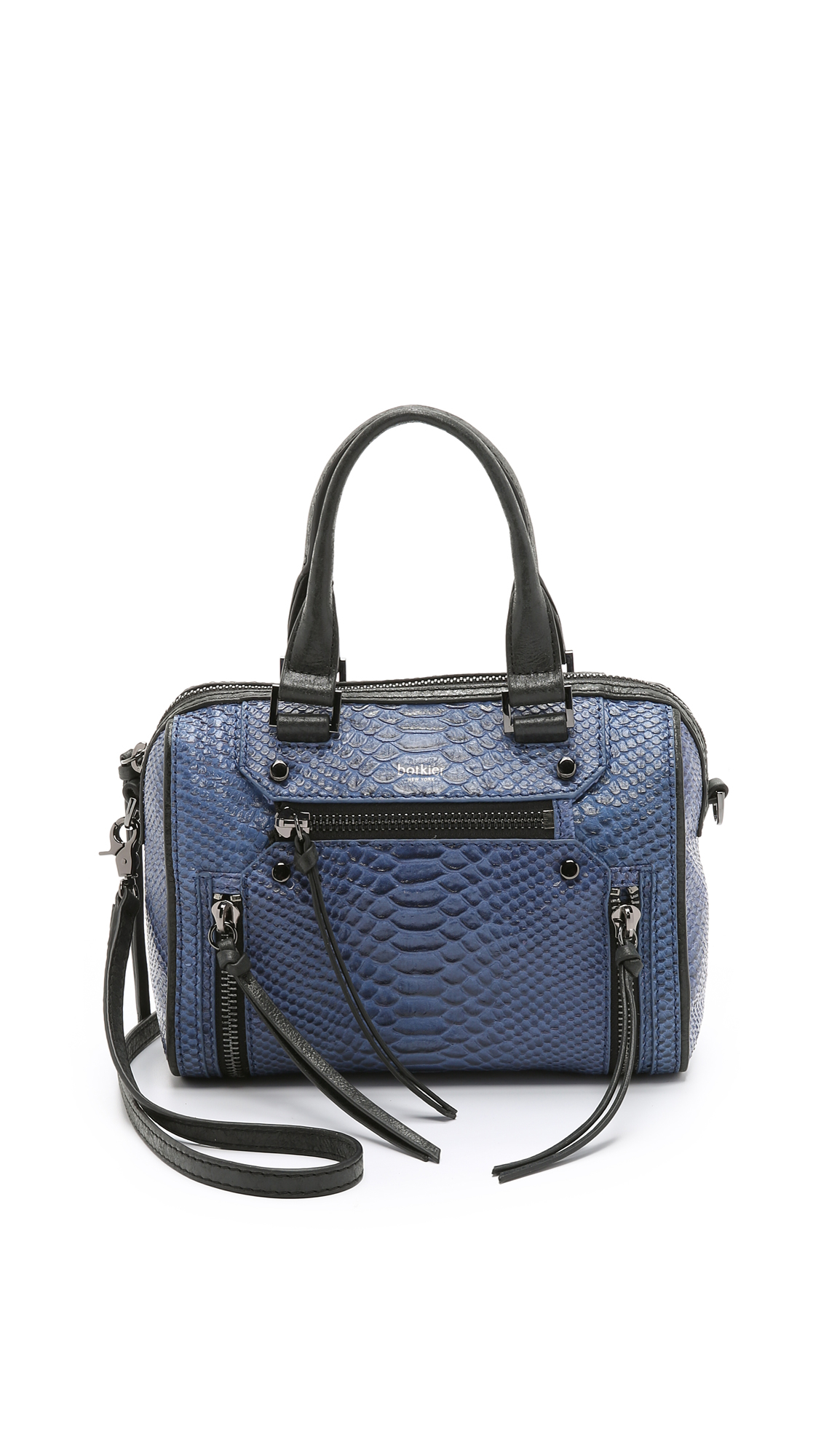 Go to ShopbopPython-embossed leather gives exotic appeal to this mid-sized Botkier satchel. Wraparound zips accent both sides, and a zip pocket details the front. The main zip opens a lined interior with 3 pockets, 2 card slots, and a pen loop. Double rolled handles and optional, adjustable strap. Leather: Cowhide. Weight: 27oz / 0.77kg. Imported, China. Measurements Height: 7.75in / 20cm Length: 9.75in / 25cm Depth: 4.25in / 11cm Strap drop: 21.75in / 55.5cm Handle drop: 4.75in / 12cm. Colour: blue