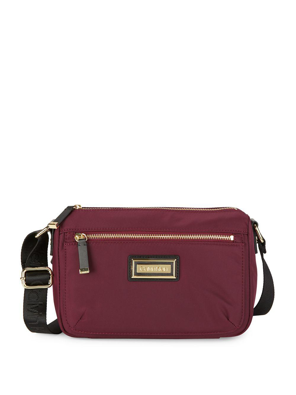 A nifty nylon carryall with convertible strap. Adjustable shoulder strap, 11 - 23" drop. Top zip closure. Outside zip compartment. Outside snapped-slip compartment. Inside zip pocket. Two inside slip pockets. Lined. 10.5"W x 8"H x 4.5"D. Nylon. Colour: purple