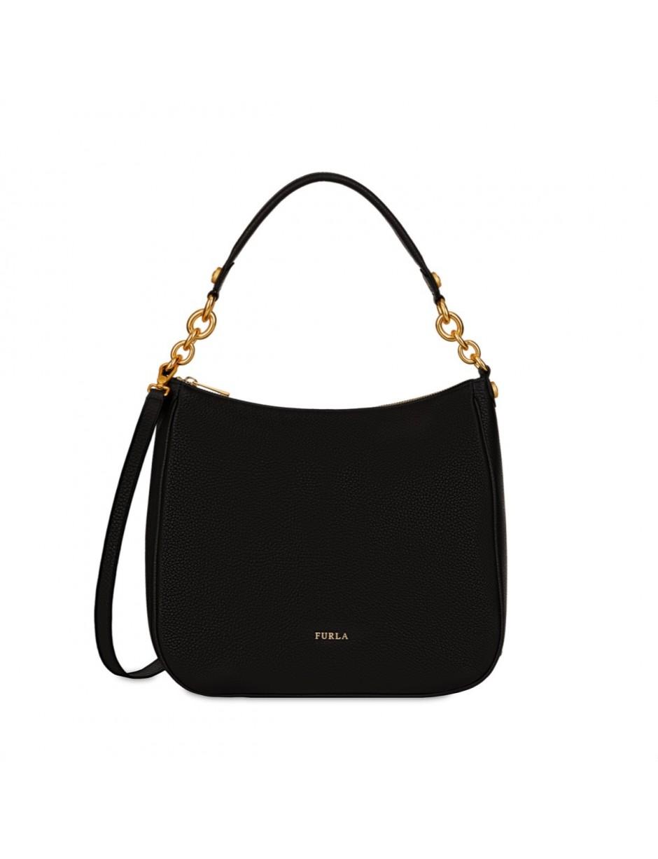 FURLA - Furla Cometa M Hobo - Onyx. 100% Pelle. Dimensiioni: 29 x 11 x 25 cm. Tracolla removibile e regolabile. Tre tasche interne di cui una a zip. Manico con dettagli in catena dorata opaca. Interno: 78% Viscosa 22% Nylon. Colour: black