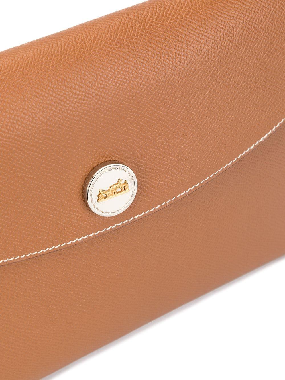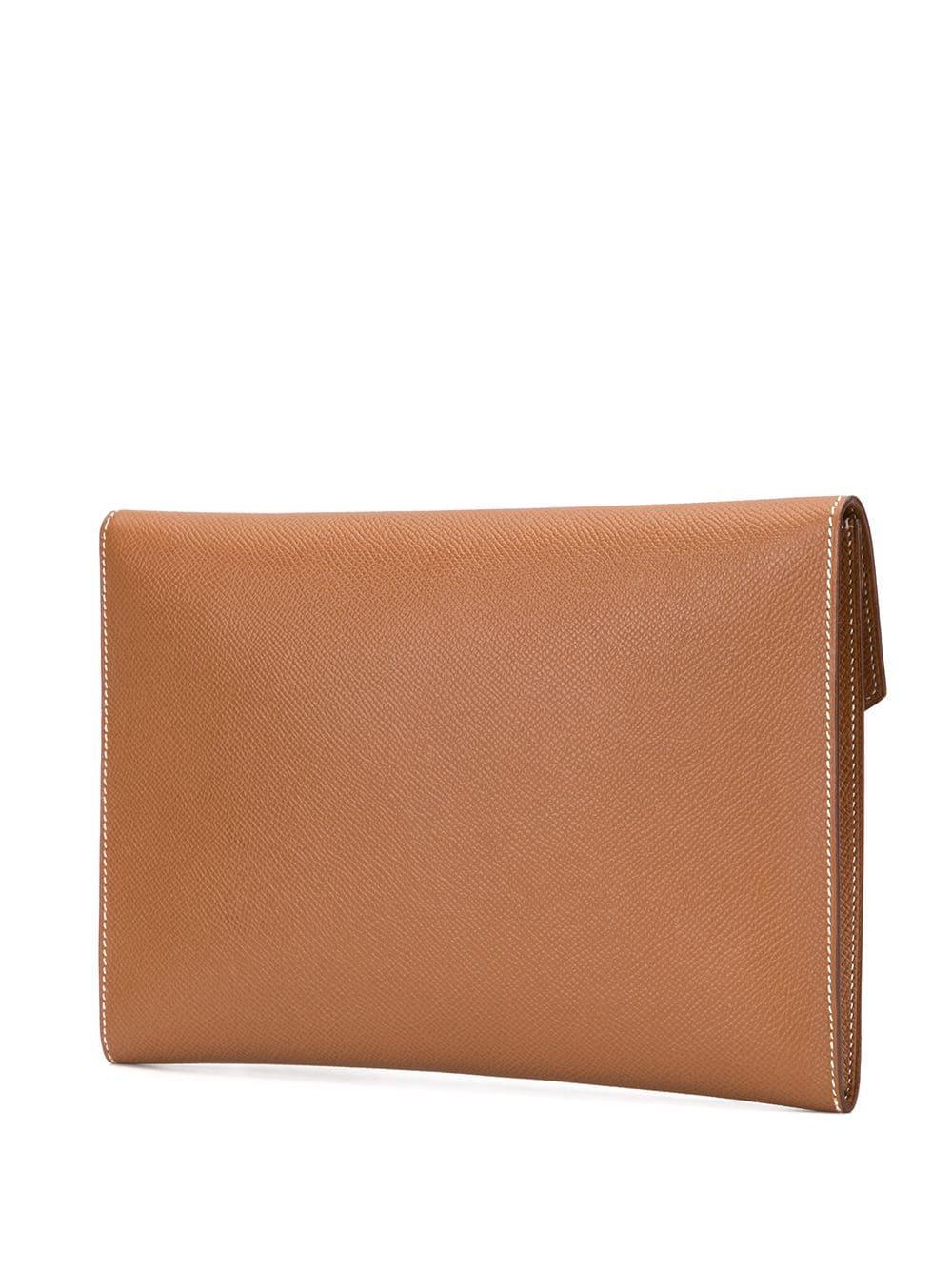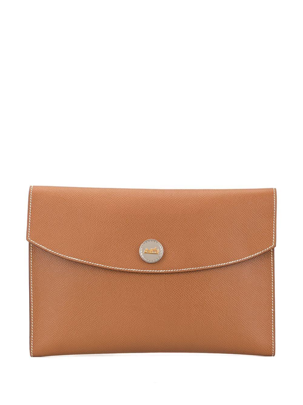 Go to FarfetchBrown calf leather Pochette Rio Horse Carriage motif clutch hand bag from Hermès Pre-Owned featuring a front logo plaque and a front flap closure. This item comes with a dust bag. Please note that pre-owned items are not new and therefore might have minor imperfections. Material:Calf Leather. Colour: brown