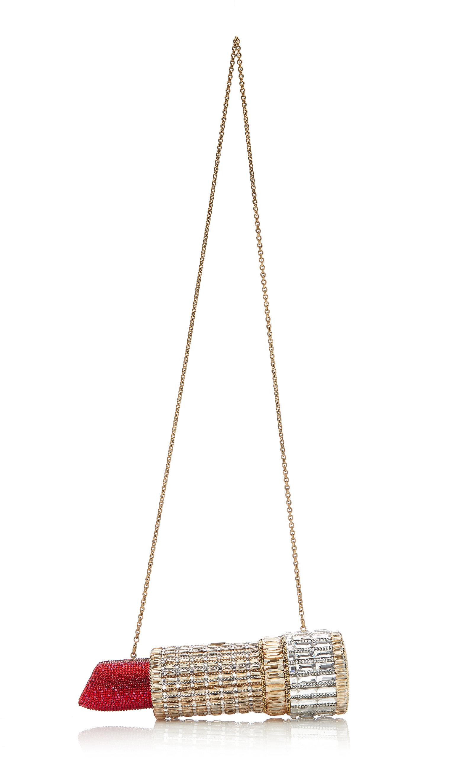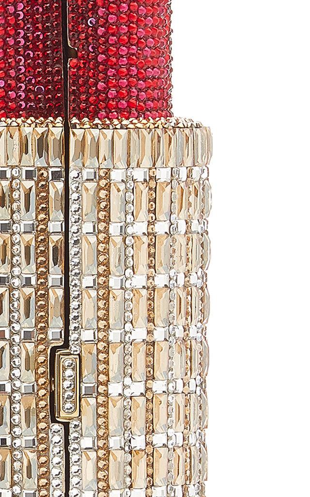 Go to Moda OperandiAs seen in the SS '20 lookbook, one of the brand's most iconic novelty silhouettes, the lipstick, is back. Chain strap option, fully encrusted in crystals, ships with dust bag, fully lined. Push down lock fastening. Composition: 100% crystal. Store in a dry and cool location. Made in Italy.