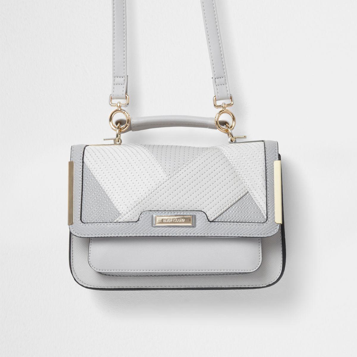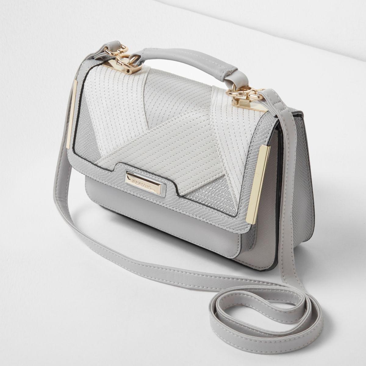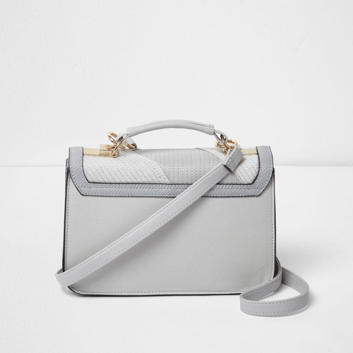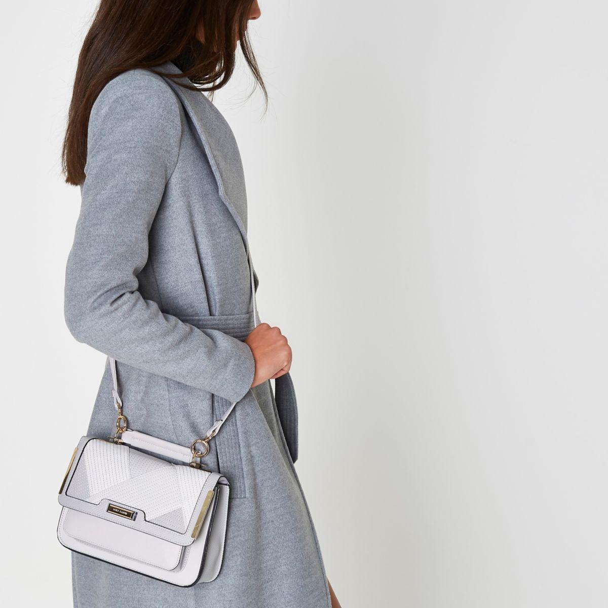 River Island Cream Patent Ri Embossed Cross Body Bag - Natural