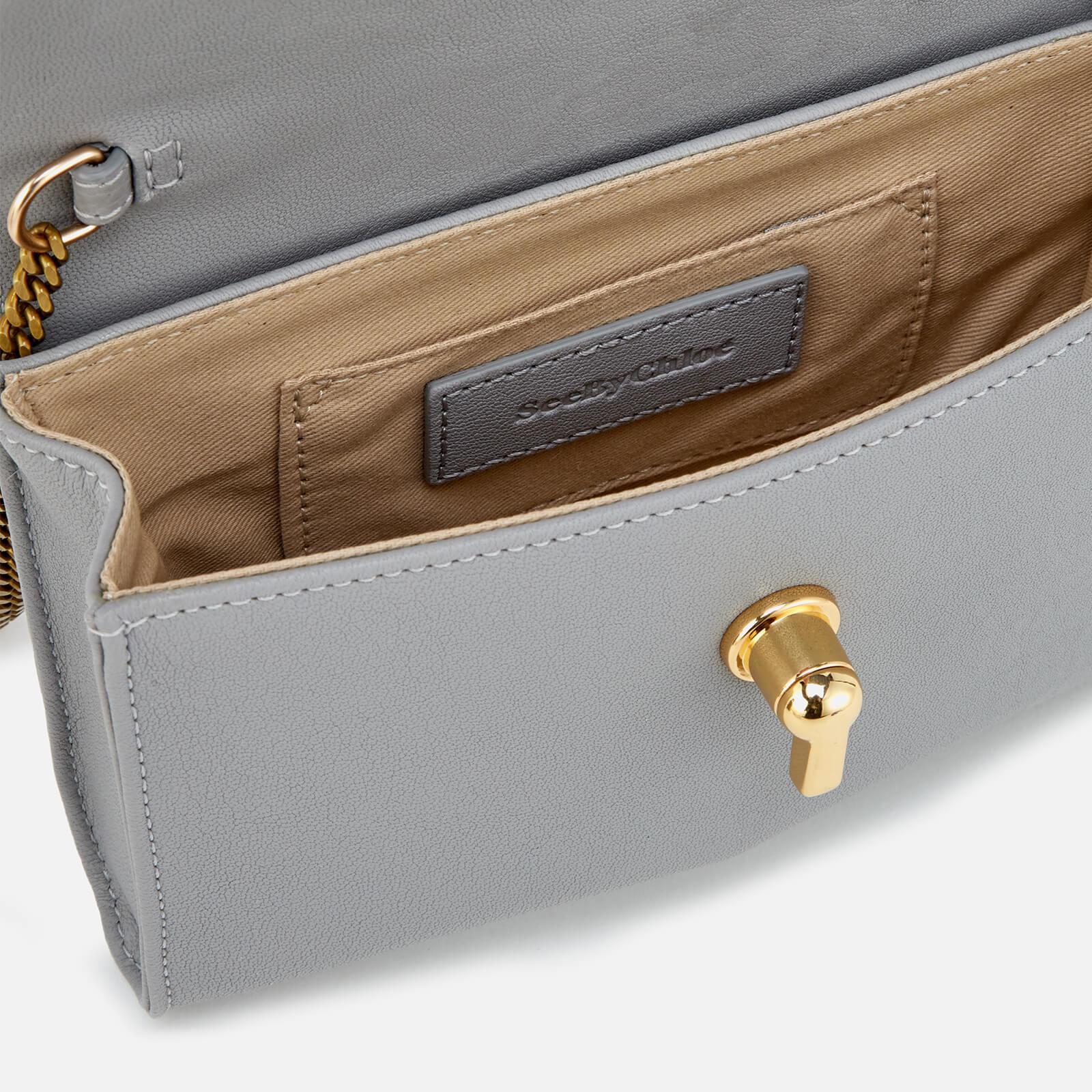 Go to MyBagWomen's 'Lois' clutch bag from See By Chloe. Crafted from soft, supple leather, the grey cross body bag fastens with a flap and turn lock closure, opening to reveal a twill-lined interior with a slip pocket for small items. Transported via a gold-tone chain strap, the shoulder bag is completed with embossed branding to the front. Main: Leather. Lining: Textile. Dimensions: H: 14cm x W: 18cm x D: 4cm. Strap Drop: 58cm. Material: Main: Leather. Lining: Textile. Size / Fit: Dimensions: H: 14cm x W: 18cm x D: 4cm. Strap Drop: 58cm.