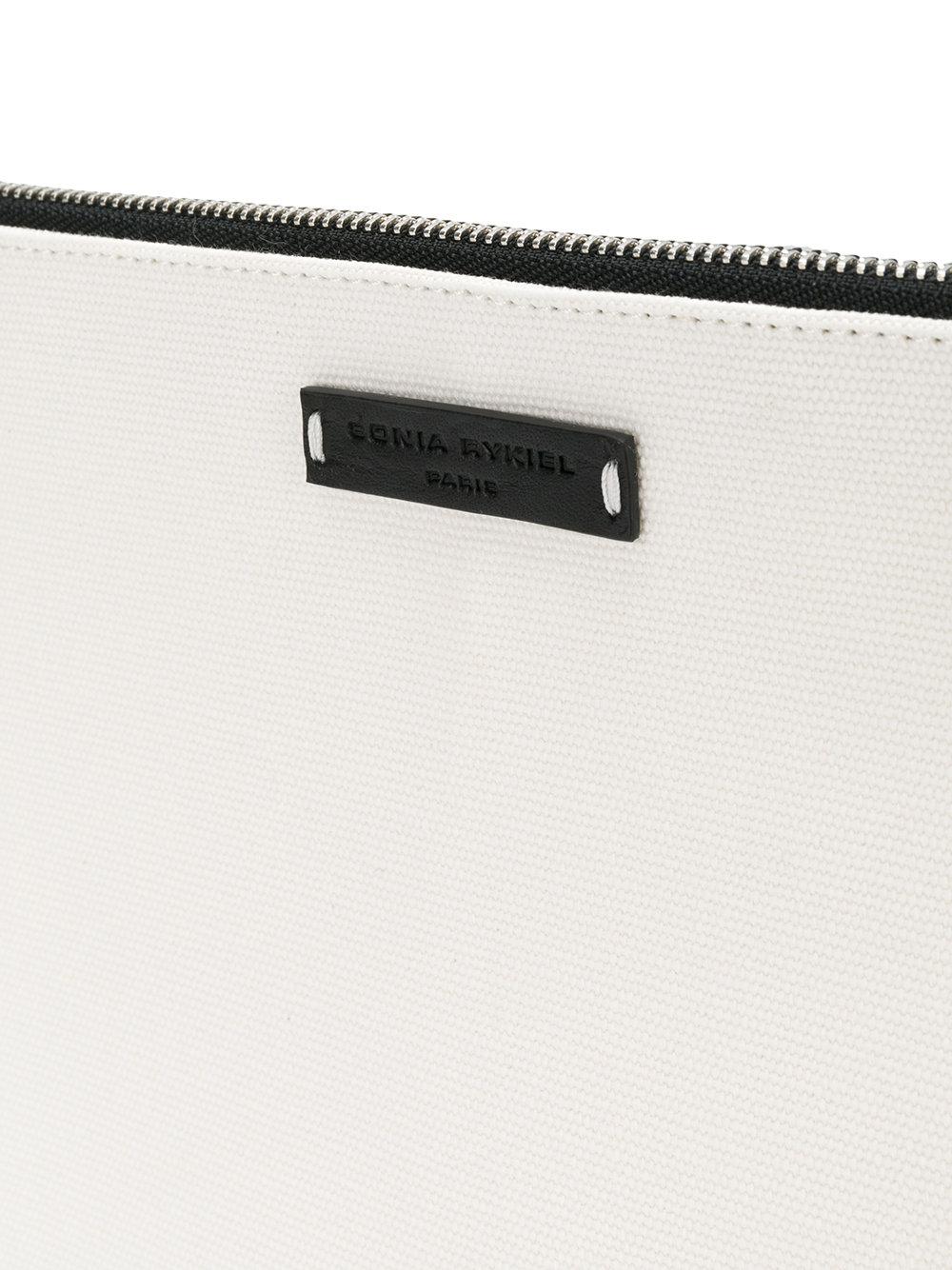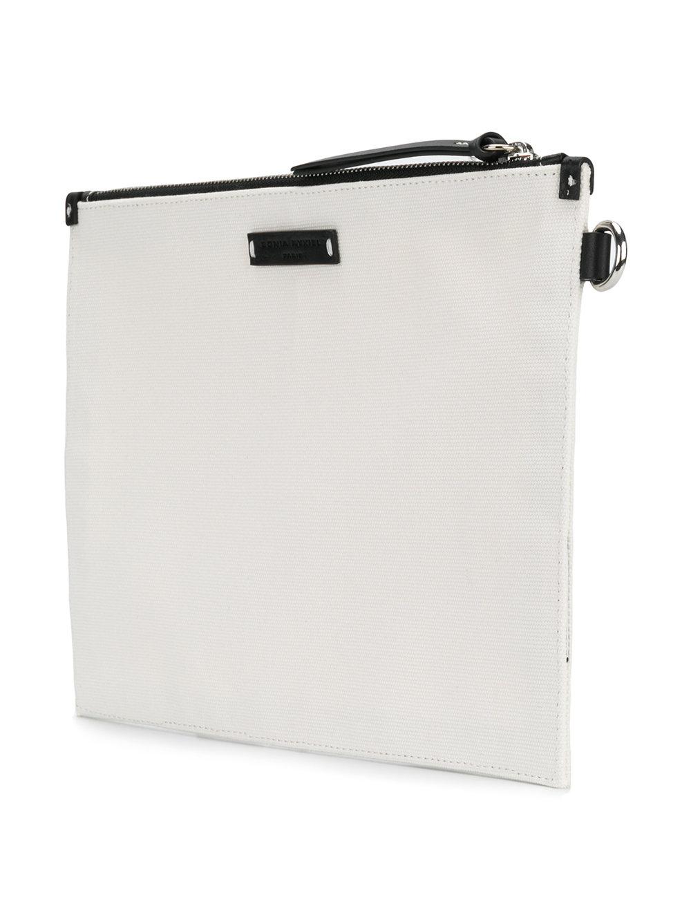 White, black and red cotton and calf leather Saint Germain clutch from Sonia Rykiel. Material:Cotton/Calf Leather.