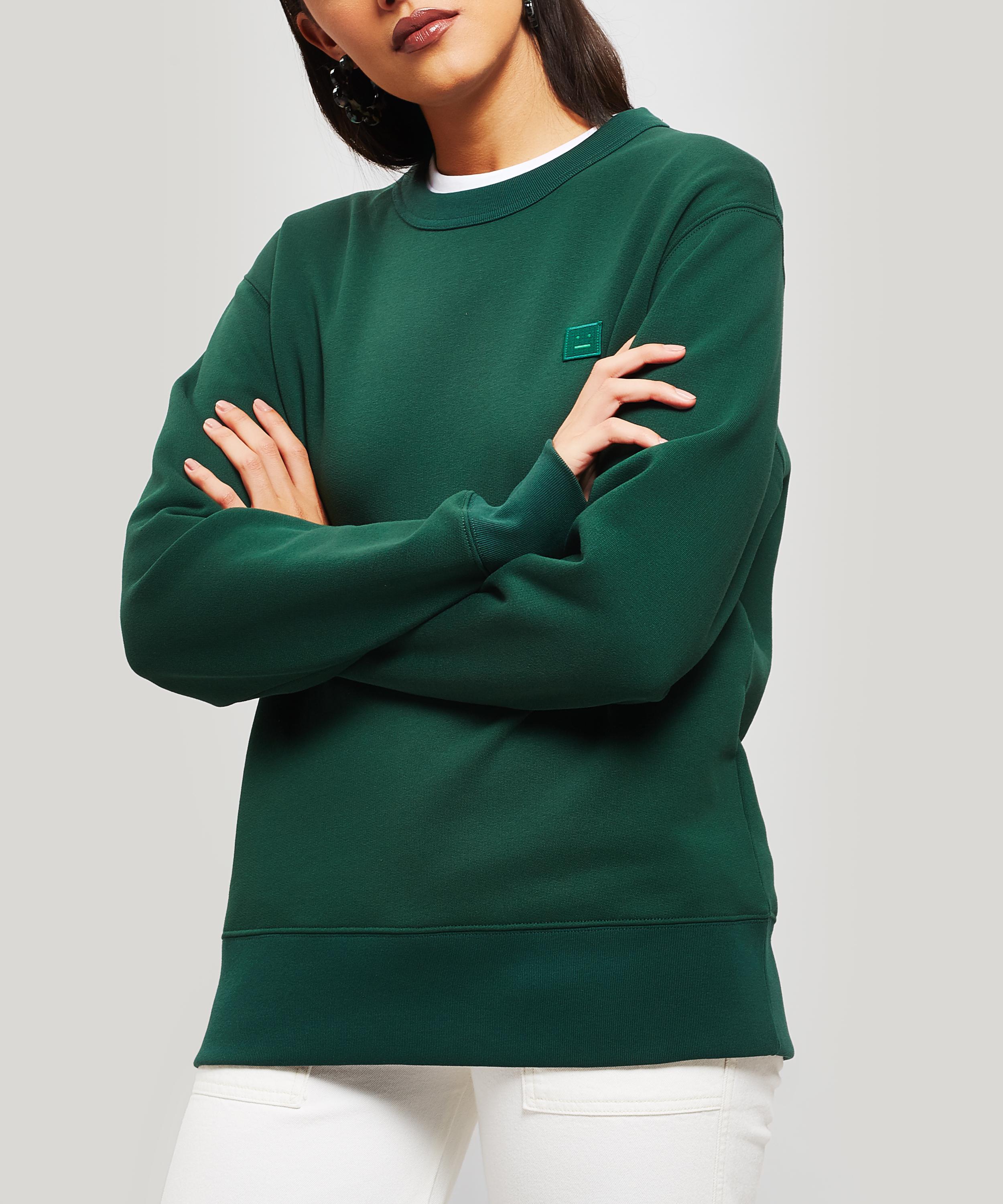 Sweatshirt. Ribbed cuffs. Face patch logo at chest. Oversized fit. Crew-neck. Pure cotton. Model is 181cm/5'11" and wears size M. Stockholm-based fashion house Acne Studios continue to demonstrate their unrivalled talent for zeitgeist-enrapturing design with this logo-adorned jumper. With over twenty years of leading the way in Scandinavian design, Acne Studios continues to push fresh concepts and forward-thinking styles. Here Acne Studios brings us its take on streetwear favourite, the jumper. Cut from pure cotton with a relaxed fit, this extended-length cover-up showcases Acne Studio's trademark square face patch logo at the chest and contributes a piece of the label's louche aesthetic to your everyday wardrobe. Add baggy checked trousers and chunky boots for a contemporary take on rebellious '90s style. 100% Cotton. Machine washable inside out. Founded by Jonny Johansson in 1996, Stockholm-based brand Acne Studios has put Scandi style on the world map and transformed itself into an unstoppable global creative collective. Johansson's fixation with contemporary culture filters through every part of the company, resulting in expansive ranges of ready-to-wear and curated collectables. Celebrated for its quality custom-developed denim, eclectic design and innovative thinking, Acne Studios has stayed true to its full name, Ambition to Create Novel Expressions. Colour: green