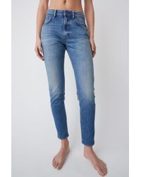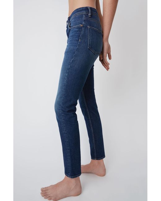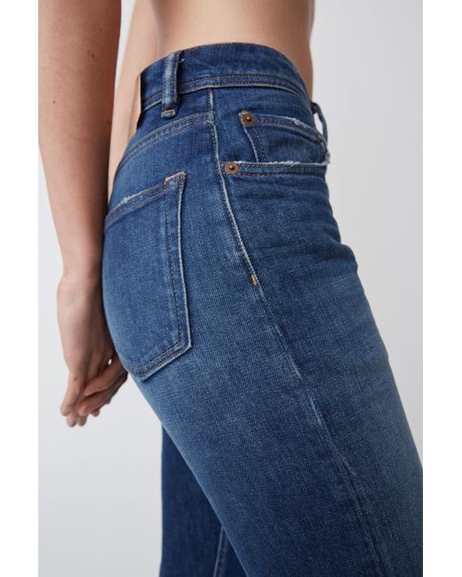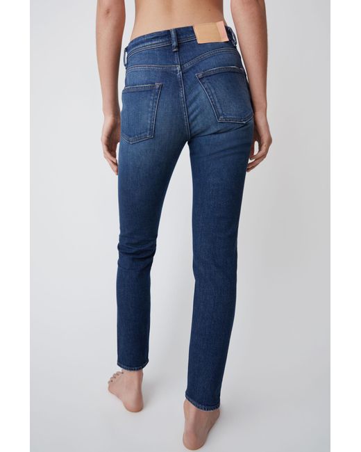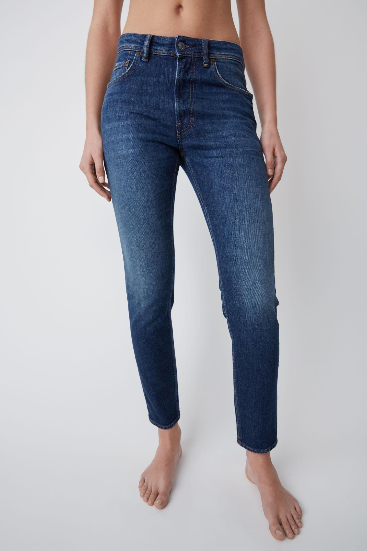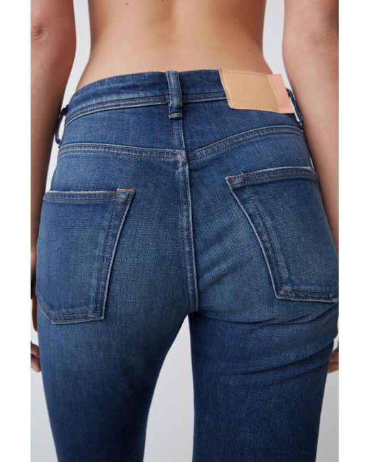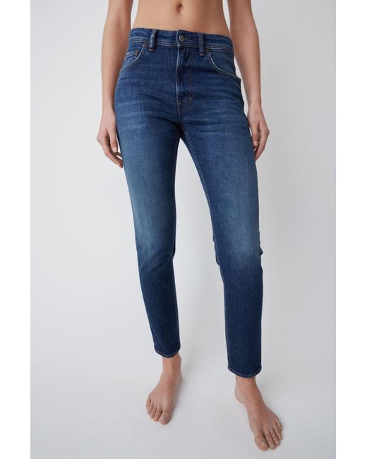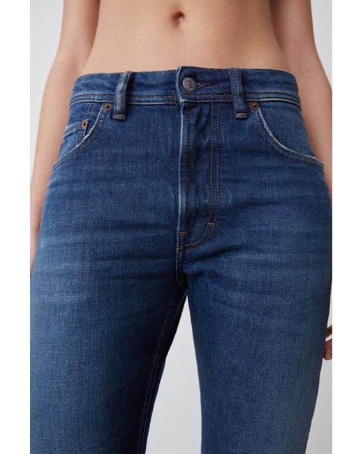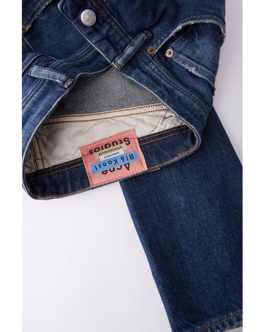 Acne Studios Blå Konst Melk Dark Blue jeans are cut to sit high on the waist and shaped to a slim, tapered silhouette. Comfort stretch denim. High rise. Cropped. Hidden rivets at back pockets. Concealed zipper fastening. Acne Studios Blå Konst Melk Dark Blue jeans are cut to sit high on the waist and shaped to a slim, tapered silhouette. Main material: 98% Cotton, 2% Elastane. Slim tapered fit jeans. Comfort stretch denim. High rise. Cropped. Hidden rivets at back pockets. Concealed zipper fastening. Acne Studios Blå Konst Melk Dark Blue jeans are cut to sit high on the waist and shaped to a slim, tapered silhouette. Main material: 98% Cotton, 2% Elastane. Colour: blue