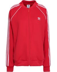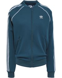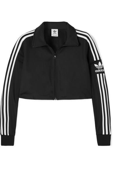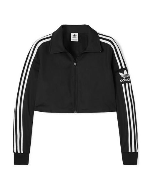 Adidas Originals' jacket is cropped, so it's perfect for wearing with high-rise jeans or a pair of the brand's track trousers. It's made from black stretch-jersey and has a sleek funnel neck shape. Match white trainers to the three stripes along the arms. Colour: black