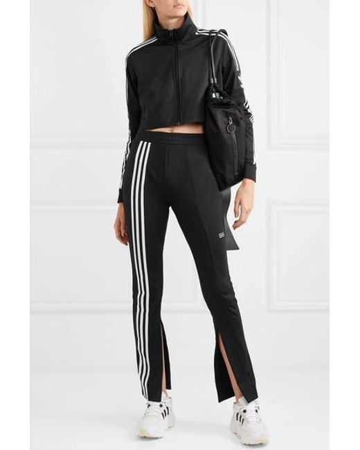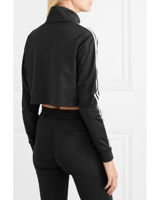 Women's Black Cropped Striped Stretch-jersey Track Jacket