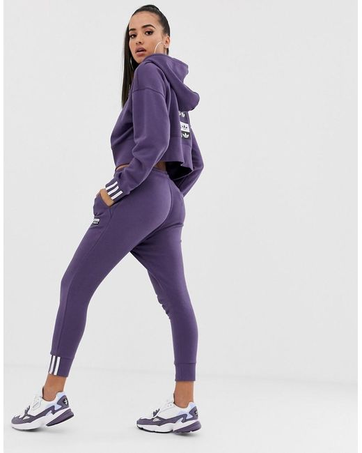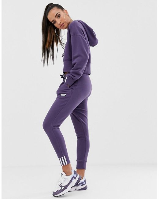 Joggers by adidas, Your casual vibe, sorted, Drawstring waistband, Side pockets, adidas 3-Stripe logo, Fitted cuffs, Slim, tapered fit, A close cut around the thigh with a slim shape through the leg. With a brand history stretching back more than 60 years, adidas draws inspiration from street culture and retro styles to provide fresh, vintage-inspired collections. The adidas Originals range incorporates everything, from the brand's most iconic trainers to new jersey pieces. Jersey. Colour: purple