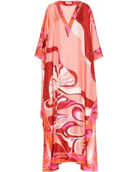 Women's Pink Maxi Flower Long Robe - Antique Coral Floral Print