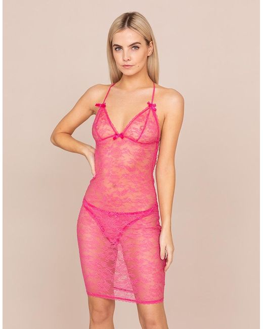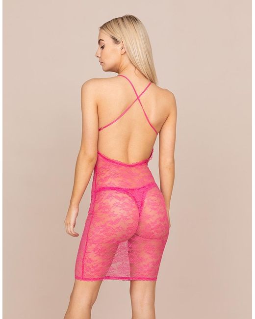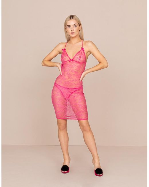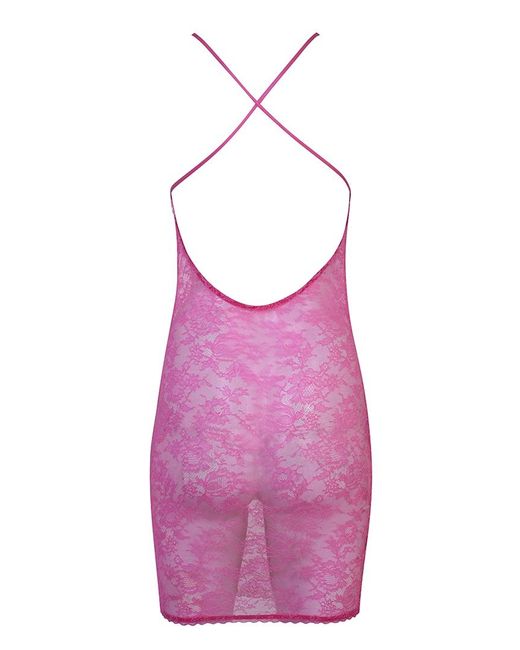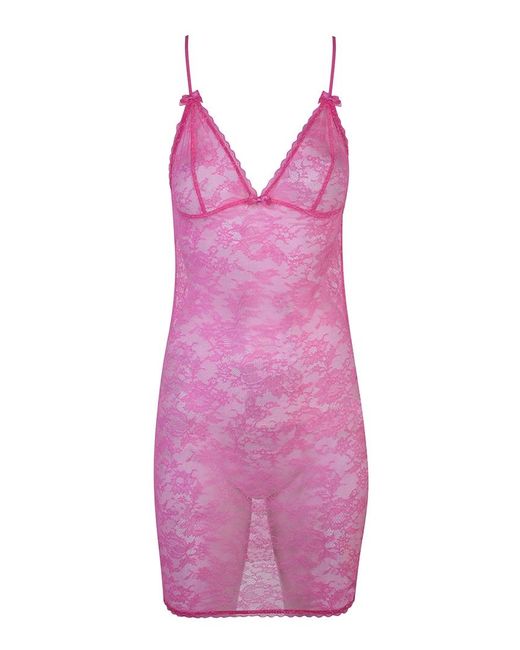 In a vibrant fuchsia hue, the head-turning Hinda slip is crafted from delicate stretch French Leavers and Chantilly lace. Accented by sweet bows, it is finished with a delicate lace trim along the cups. Wear as part of the Hinda lingerie set. Fitted slip with cross-over back. Fabrics & care: Body: 89% polyamide, 11% elastane. Hand wash recommended. Colour: purple