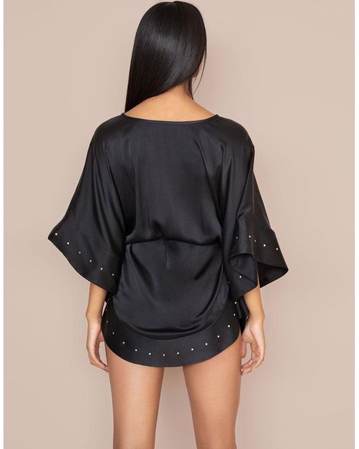 Get up to no good in Tahra's rock and roll studs. Slip this soft silk kaftan over your swimwear to take your look from an afternoon of bathing in the sun to sipping cocktails on a rooftop. Complete with a belt to show off your curves, it's simple yet sexy. Oversized draped shape. Removable belt with gold AP ends. Fabrics and Care: 100% silk. Cool hand wash recommended. Fabrics and Care: 100% silk. Cool hand wash recommended. Colour: black