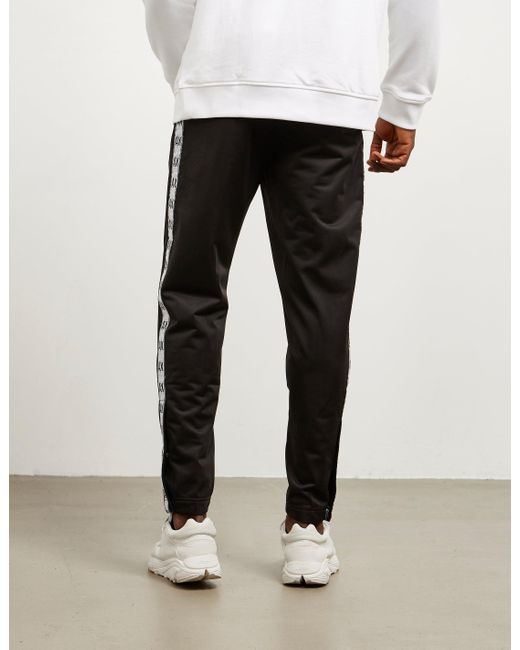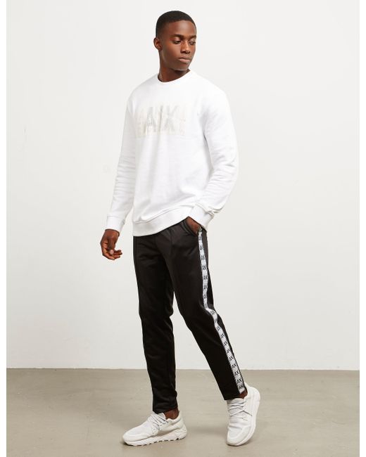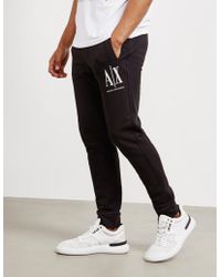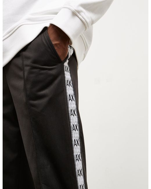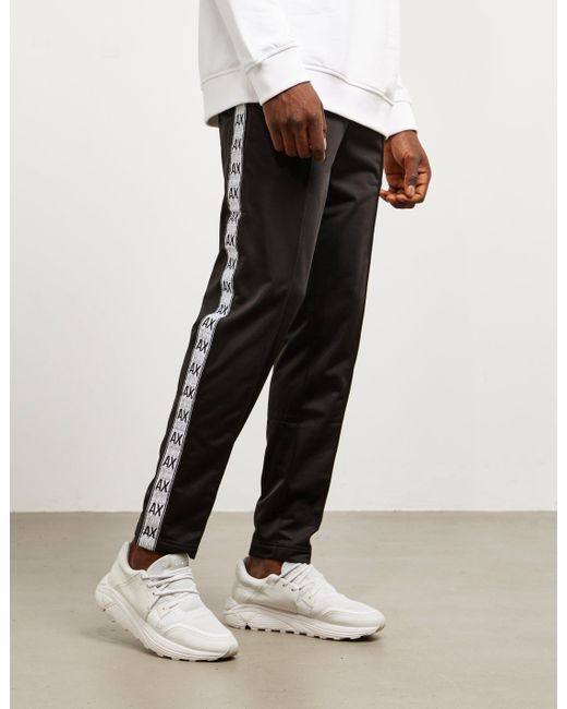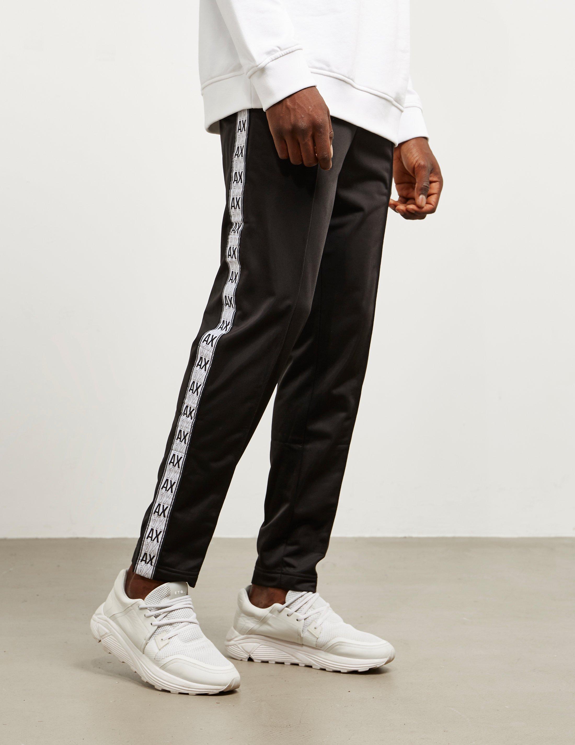 Launched in 1991, armani exchange aims to be a more accessible branch of the armani brand, allowing you to get the same style and feel with a nod towards street-chic style and modern dance music. This shows in these men's tape track trousers which come in a black colourway and features tape branding. Details; black colourway, slim fit, tonal stitching, elasticated waist, two side pockets and tape branding to the side to complete. Model is 6'2" and wears a medium. Colour: black