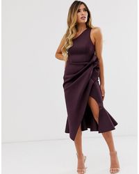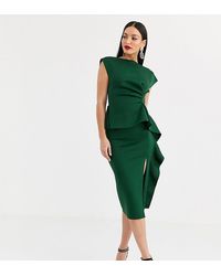 Asos Design Tall Peplum Pencil Midi Dress With Tuck Detail