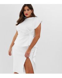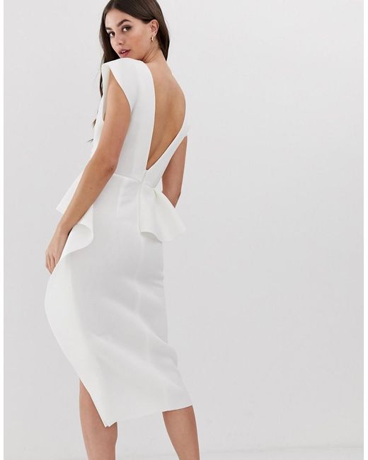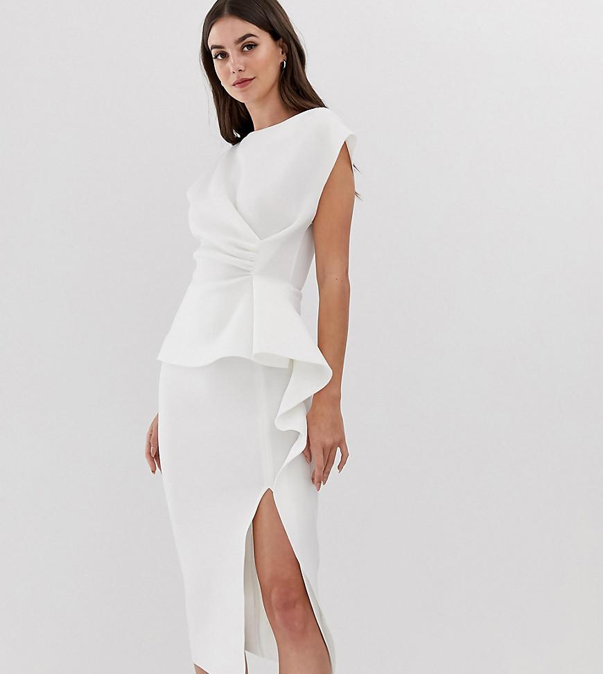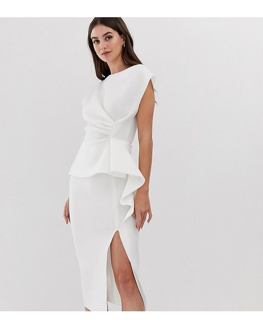 Women's White Asos Design Tall Peplum Pencil Midi Dress With Tuck Detail