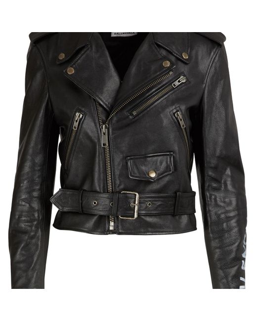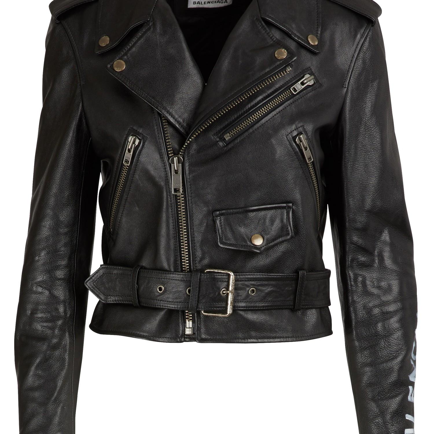Balenciaga's biker jacket is painted with the house's moniker in graffiti-style lettering. Made from supple textured-leather, it's lightly padded for added warmth and has moto-inspired zipped cuffs and a buckled hem. Layer yours over a sweater or one of the label's cool graphic tops id.
