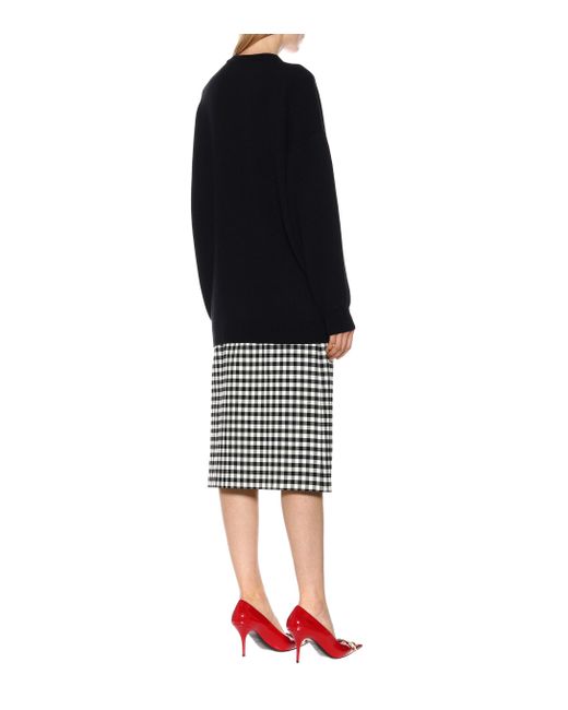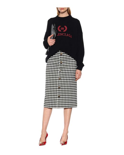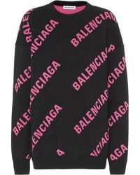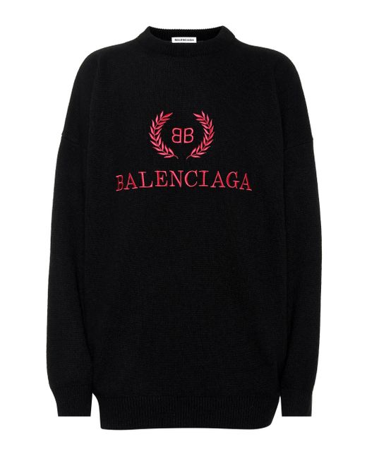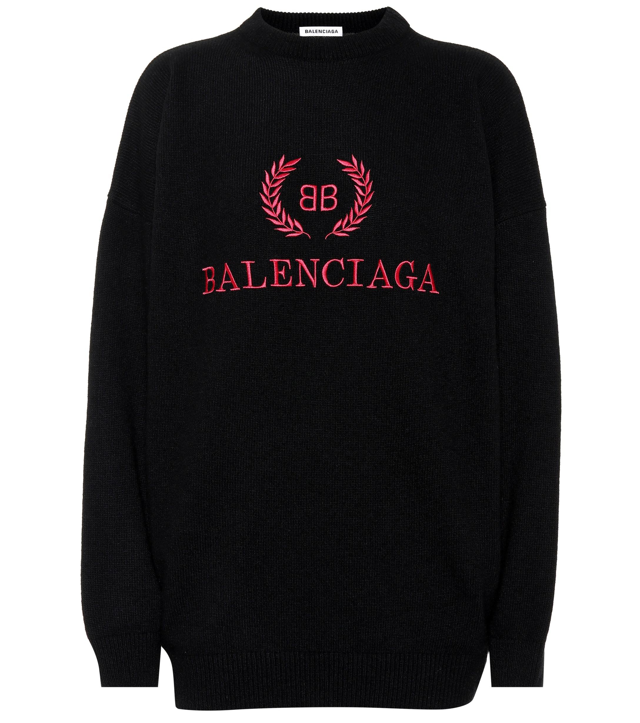 Balenciaga's outlook on the branding trend comes in the form of this logo-embroidered wool and cashmere jumper. Colour: black