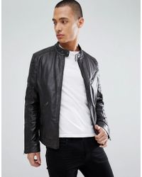 Biker jacket by Barney's Originals, The search for your next trophy jacket is over, Round collar with pin-buckle fastening, Zip opening, Stitched sleeves, Functional pockets, Regular fit, A standard cut for a classic shape. Leather. Colour: black