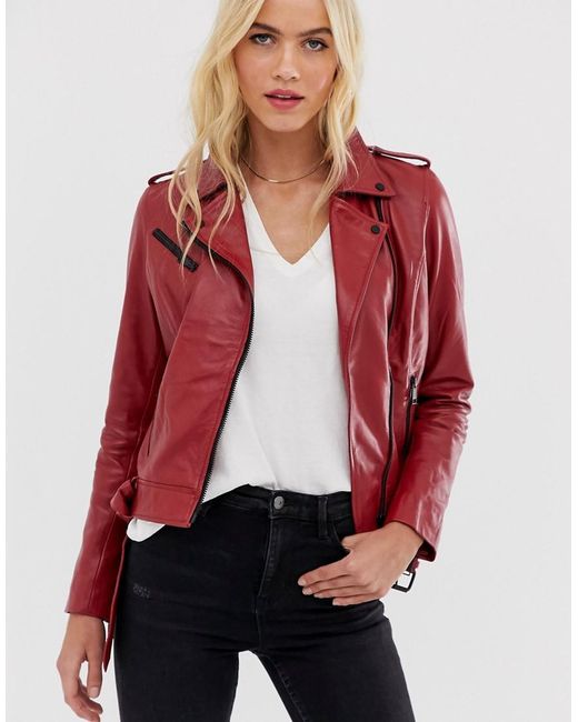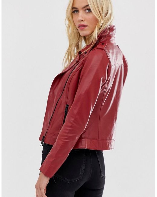 Women's Barney's Originals Coloured Leather Biker Jacket In Red
