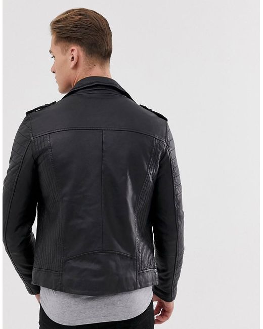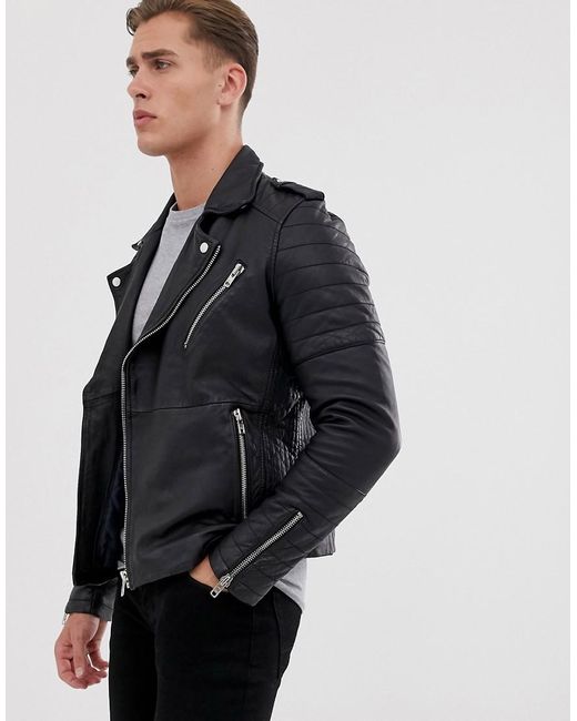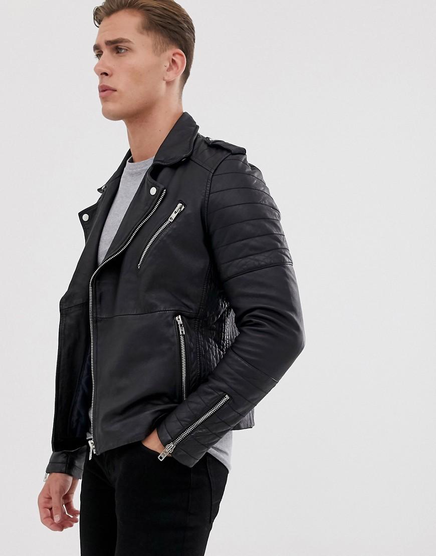 Biker jacket by Barneys Originals, Add-to-bag potential: considerable, Notch lapels, Zip fastening, Quilted sleeves, Functional pockets, Zipped cuffs, Regular fit, Just select your usual size. Leather. Colour: black