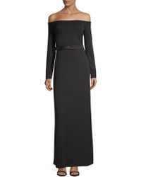 Floor-length dress accented with mesh lace overlay. Roundneck. Sleeveless. Concealed back zip. About 58" from shoulder to hem. Nylon. Hand wash. Model shown is 5'10" (177cm) wearing US size 4. BCBGMAXAZRIA.