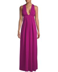 Floor-length dress accented with mesh lace overlay Round neck Sleeveless Concealed back zip About 58in from shoulder to hem Nylon Hand wash Imported Model shown is 5'10in (177cm) wearing US size 4. Colour: red