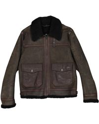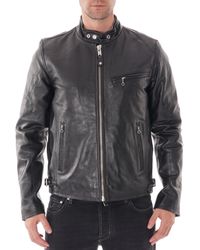 Please note: Size selections are European. For US conversions, please reference the size chart. Color/pattern: black. Approximately 27in from shoulder to hem. Measurement was taken from a size 50 and may vary slightly by size. Design details: leather design, quilted shoulders, band collar, zippered left chest pocket, two zippered pockets, zippered cuffs, interior pocket. Zipper closure. Medium weight. Shell: 100% lamb leather. Lining: 100% viscose. Clean by leather expert. Made in Italy. Colour: black