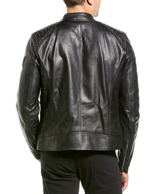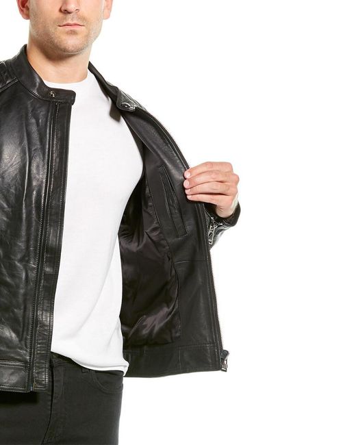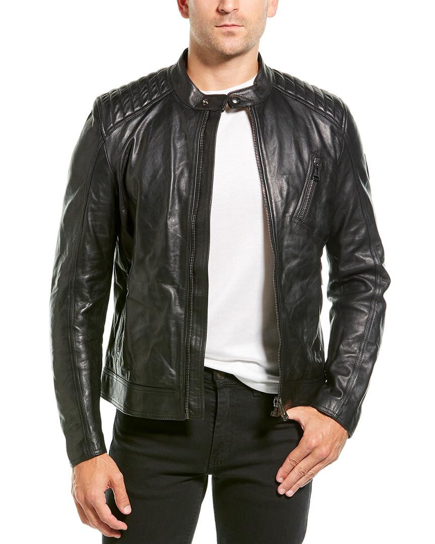 Please note: Size selections are European. For US conversions, please reference the size chart. Color/pattern: black Approximately 27in from shoulder to hem Measurement was taken from a size 50 and may vary slightly by size Design details: leather design, quilted shoulders, band collar, zippered left chest pocket, two zippered pockets, zippered cuffs, interior pocket Zipper closure Medium weight Shell: 100% lamb leather Lining: 100% viscose Clean by leather expert Made in Italy.