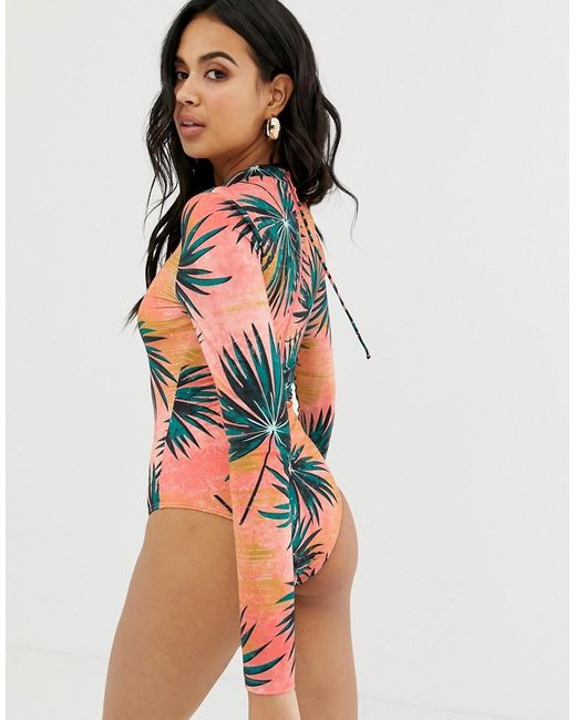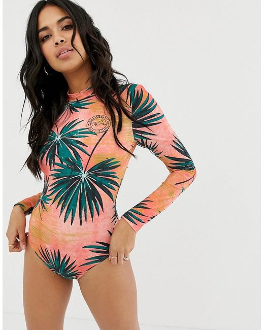 Women's Long Sleeve Surf Suit In Palm Print