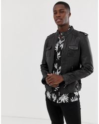 Biker jacket by Bolongaro Trevor, You can't beat a classic, Fully lined, Round collar, Asymmetric zip fastening, Stitched quilted sleeves, Functional pockets, Zipped cuffs, Regular fit, A standard cut for a classic shape. Hoxton-founded Bolongaro Trevor takes its sartorial cues from British subcultures like the mods, skins and punks. Designed in East London, the brand's retro leather jackets, hero shirts and grunge-inspired knitwear get the new-school treatment with hardware trims and military influences. Leather. Colour: black