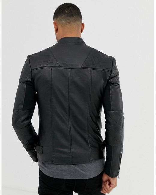 Men's Black Quilted Leather Biker Jacket