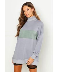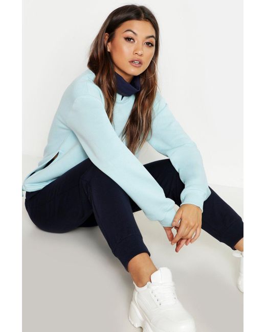 Women's Blue Contrast Roll Neck Premium Sweat