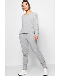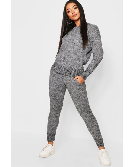 Women's Gray Crew Neck Heavy Knitted Lounge Set