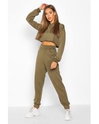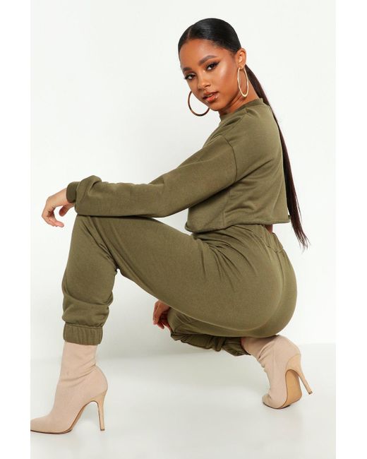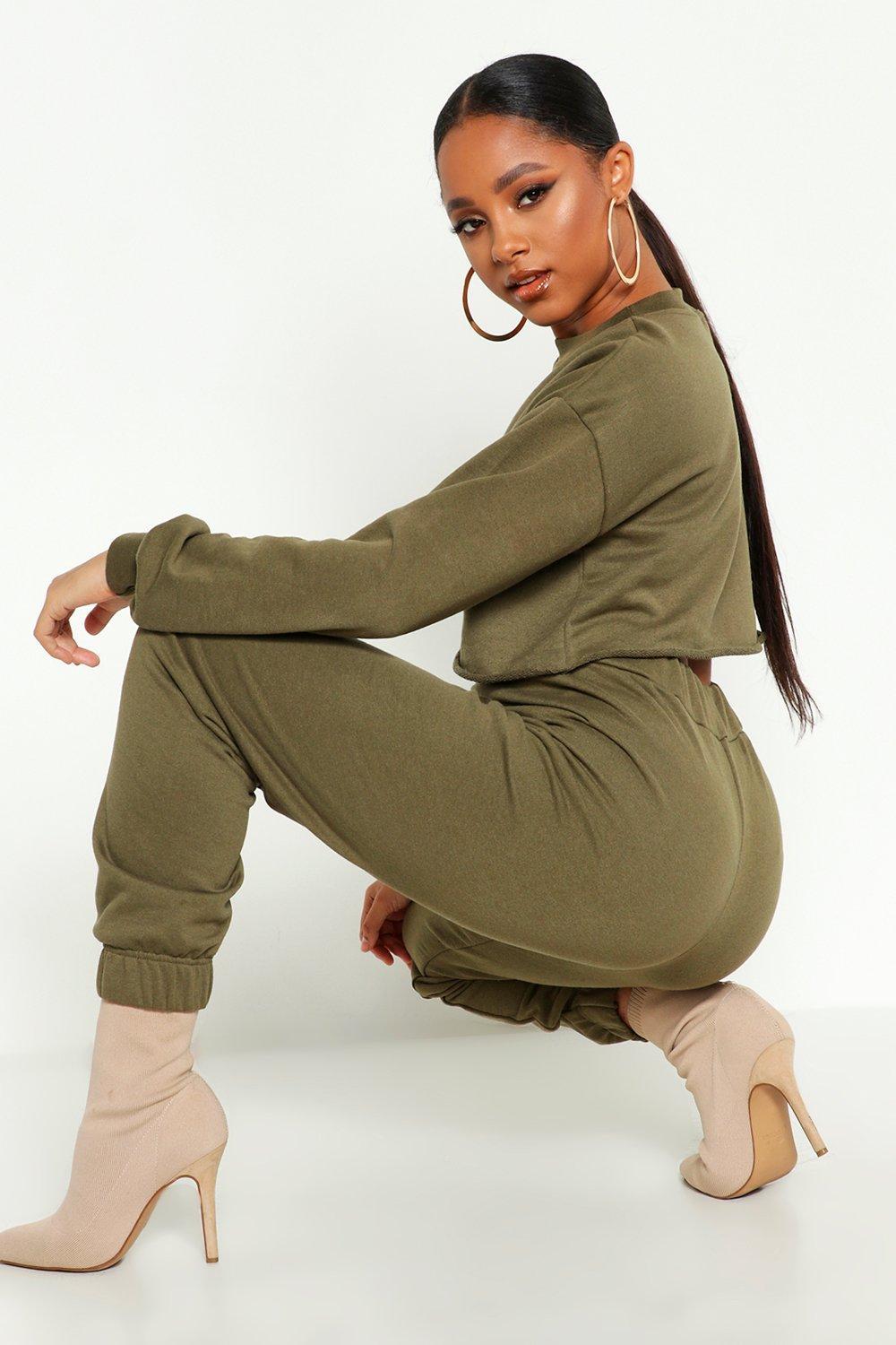 Women's Green Crew Neck Raw Hem & Cuff Jogger Tracksuit
