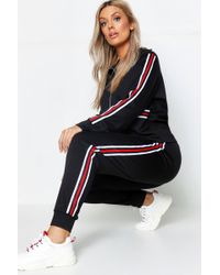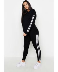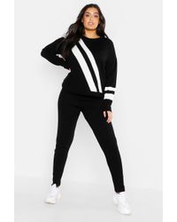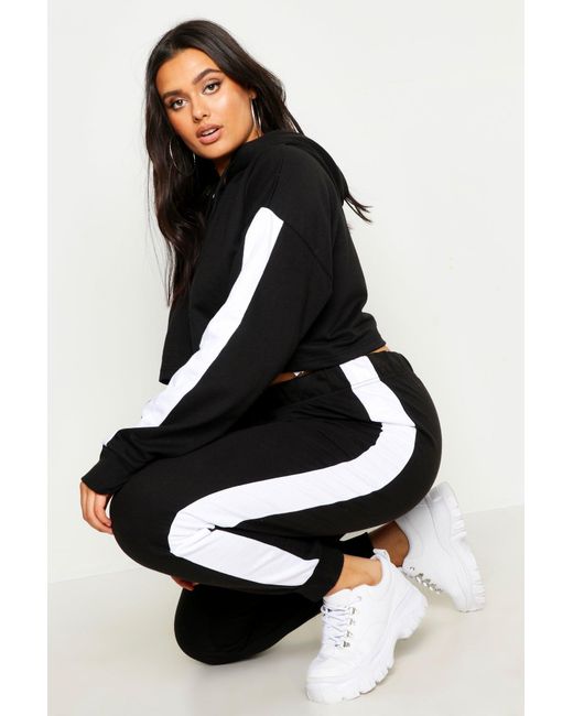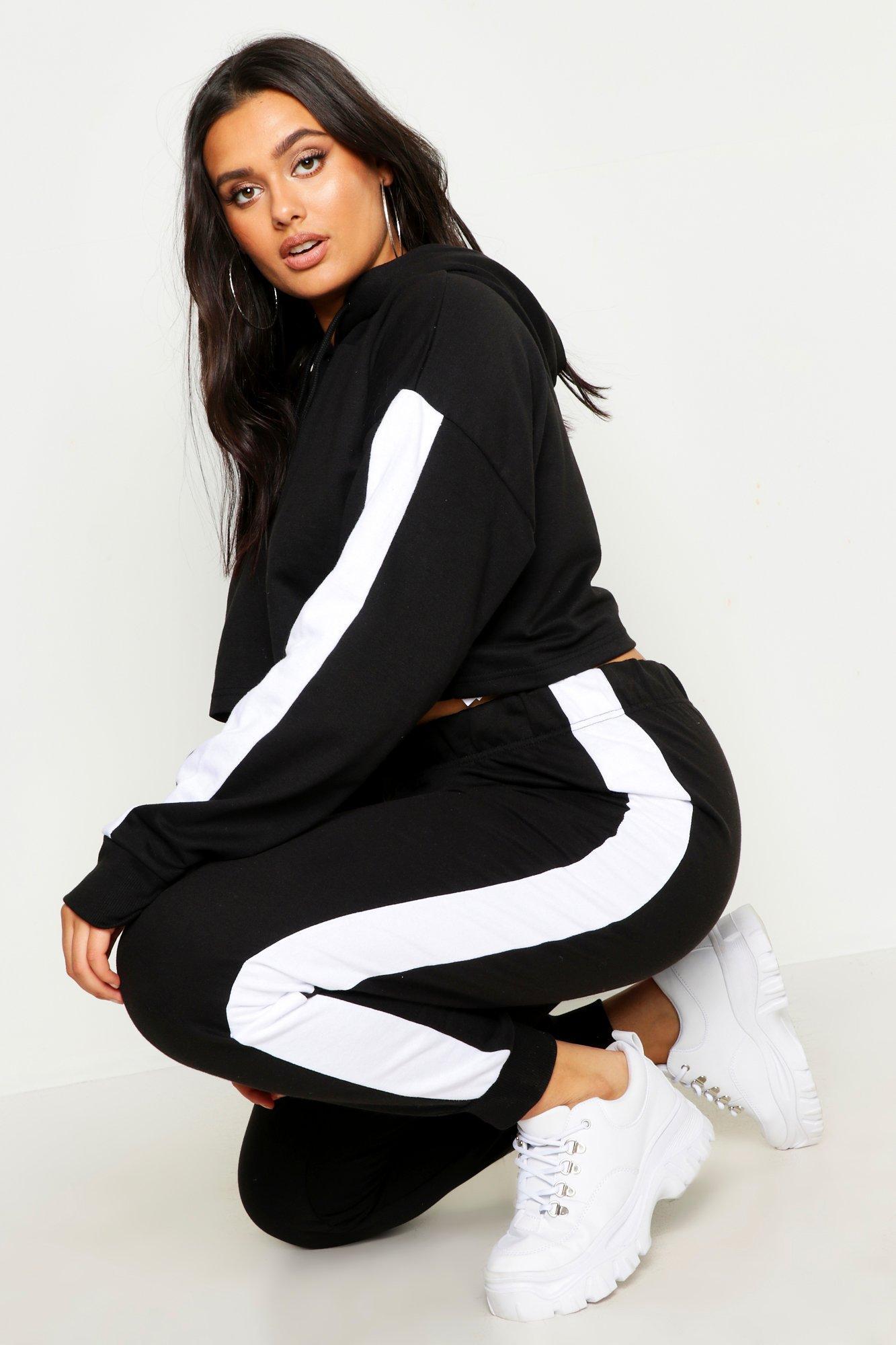 Plus Side Stripe Hooded Lounge Set. Colour: black