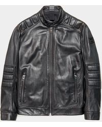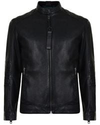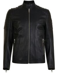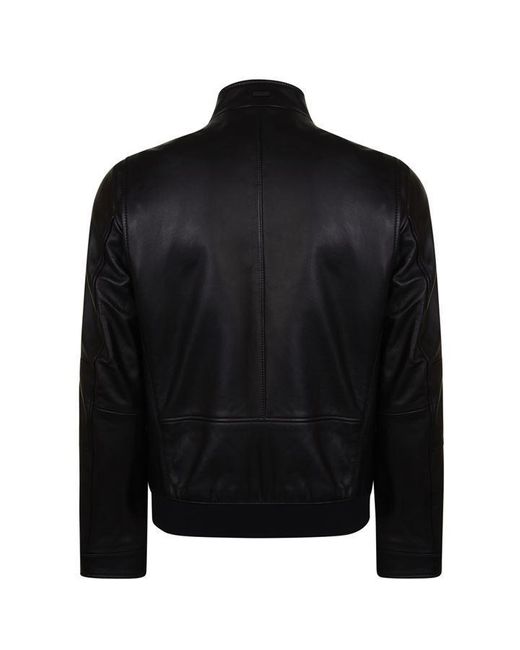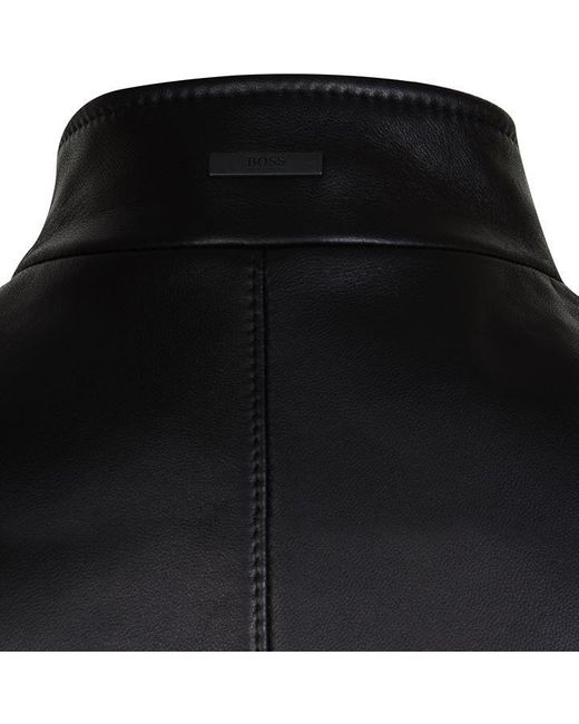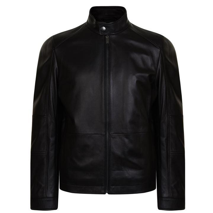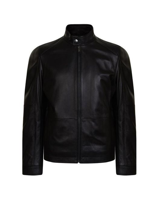 Complete your everyday ensemble with this Numano leather jacket from BOSS. Designed in a contemporary style, this piece is crafted entirely in leather and boasts a central zip fastening, two pockets and stitch detailing. Finished with a rounded neckline with a branded button closure, this stylish piece would be a welcome addition to your wardrobe. Size selection: European sizing (Standard sizing)Fits true to size, take your normal sizeRegular fit100% lamb leatherLining: 100% polyester Professional leather cleaning Black 48 (M). Colour: black