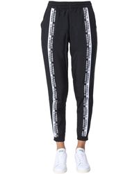 Calvin klein underwear unites their love of contemporary lines and timeless designs with these woman's band track trousers which come in an ivory colourway and features their signature monogram branding to the waistband for that perfect sporting casual staple. Ivory colourway, cotton blend construction, elasticated waist band, ribbed cuffs, slim fit, two side pockets and branding to the waist band to complete. Model is 5'9.5" and wears a size 8. For matching hoodie search 084235. Colour: white