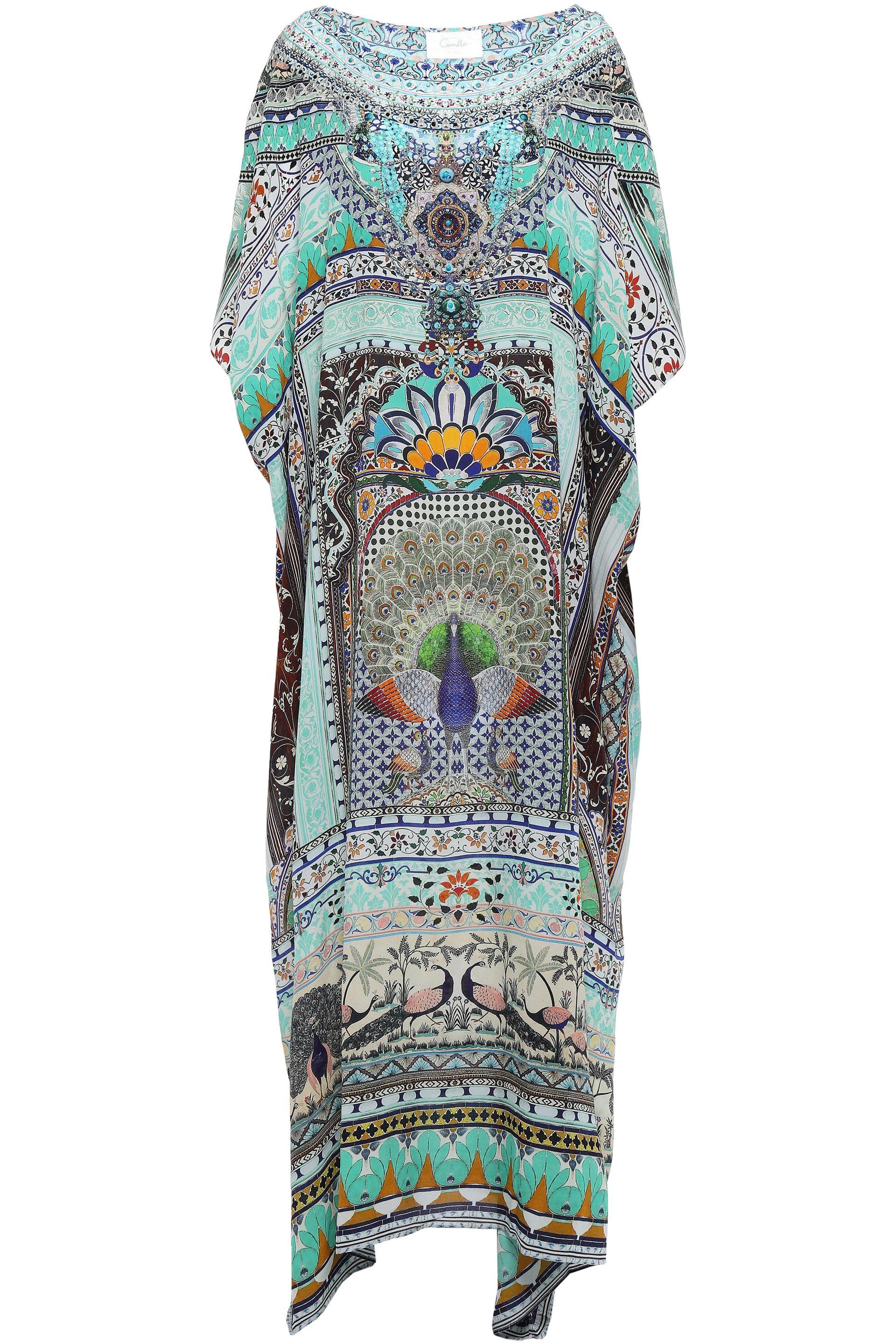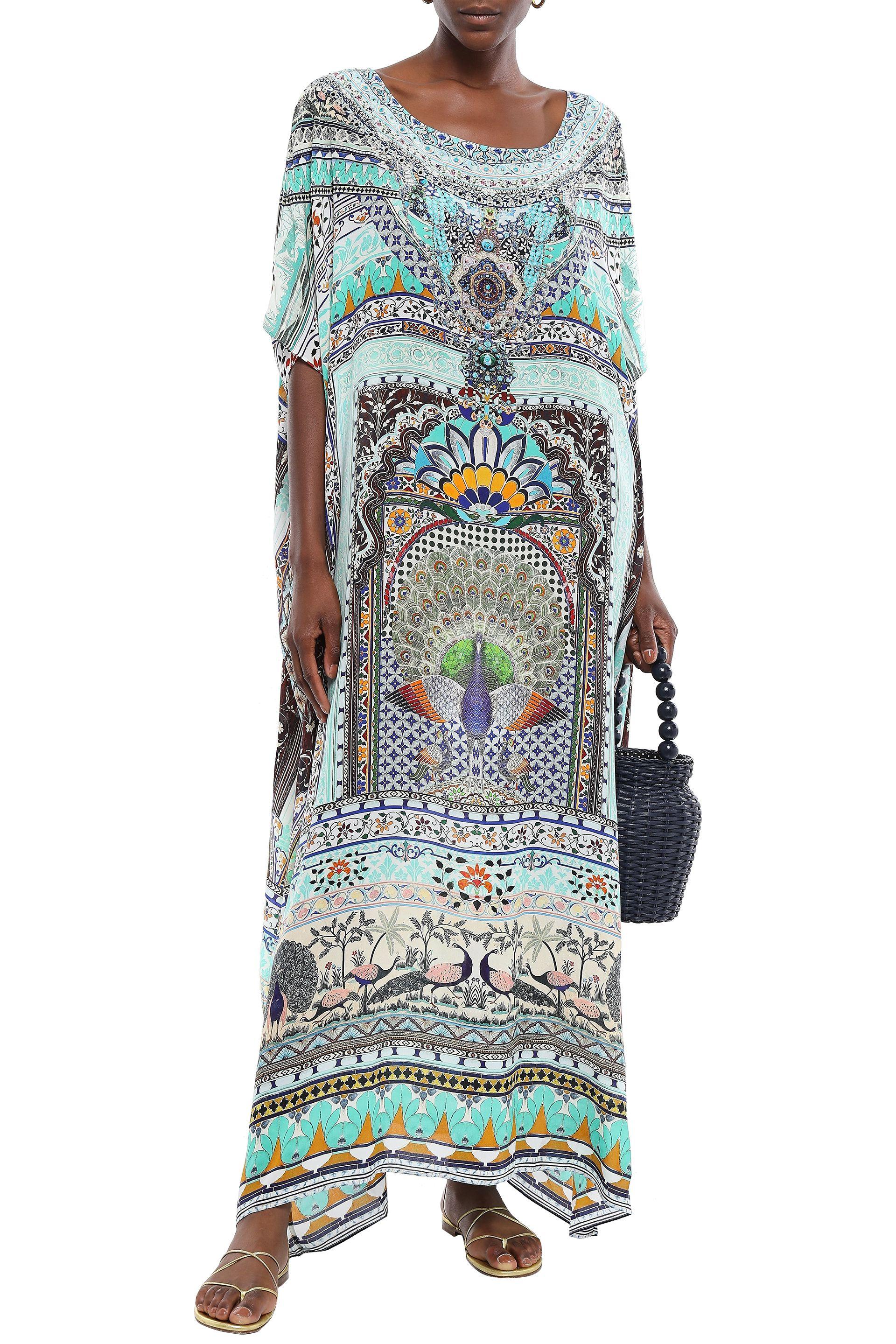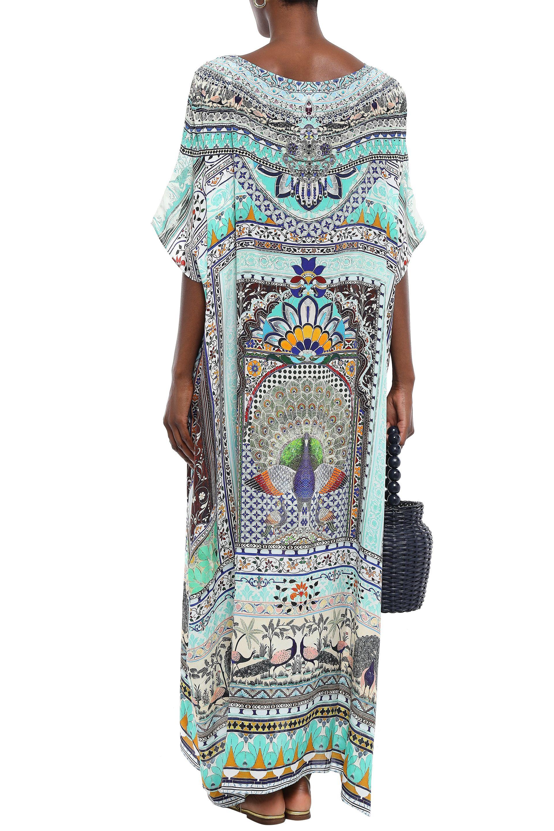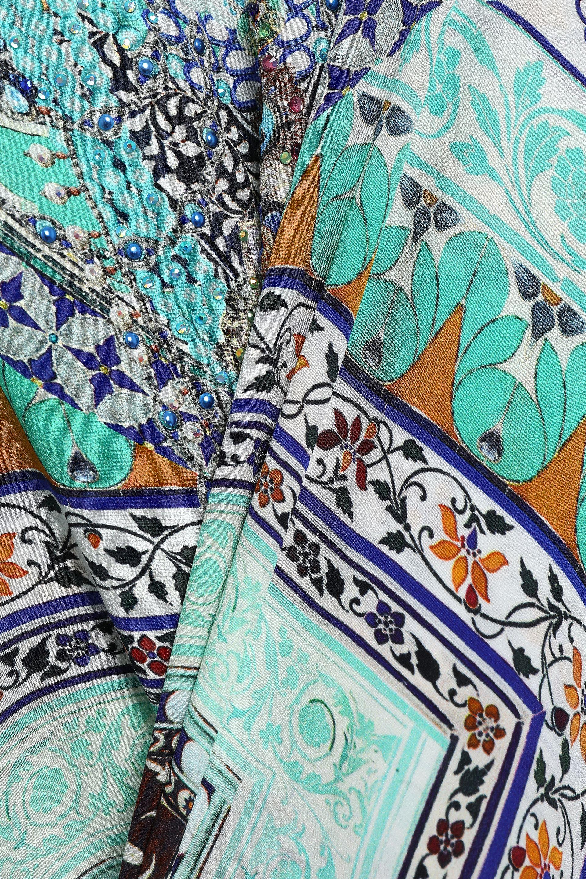 Soul Sisters Crystal-embellished Printed Silk Crepe De Chine Coverup Mint