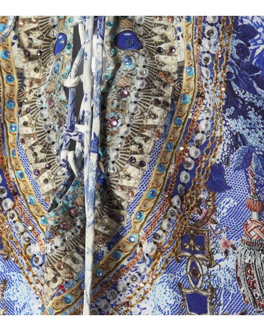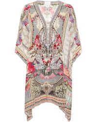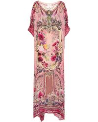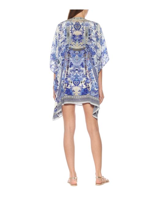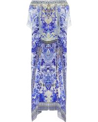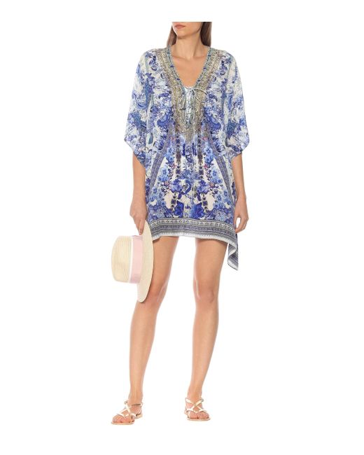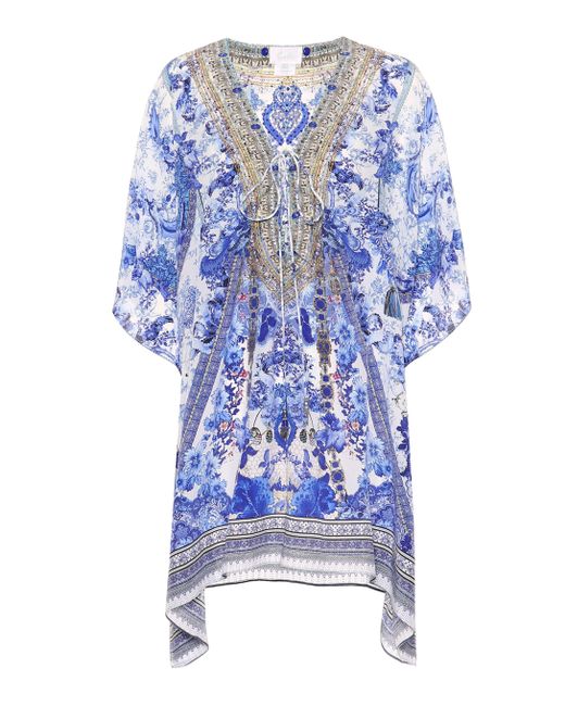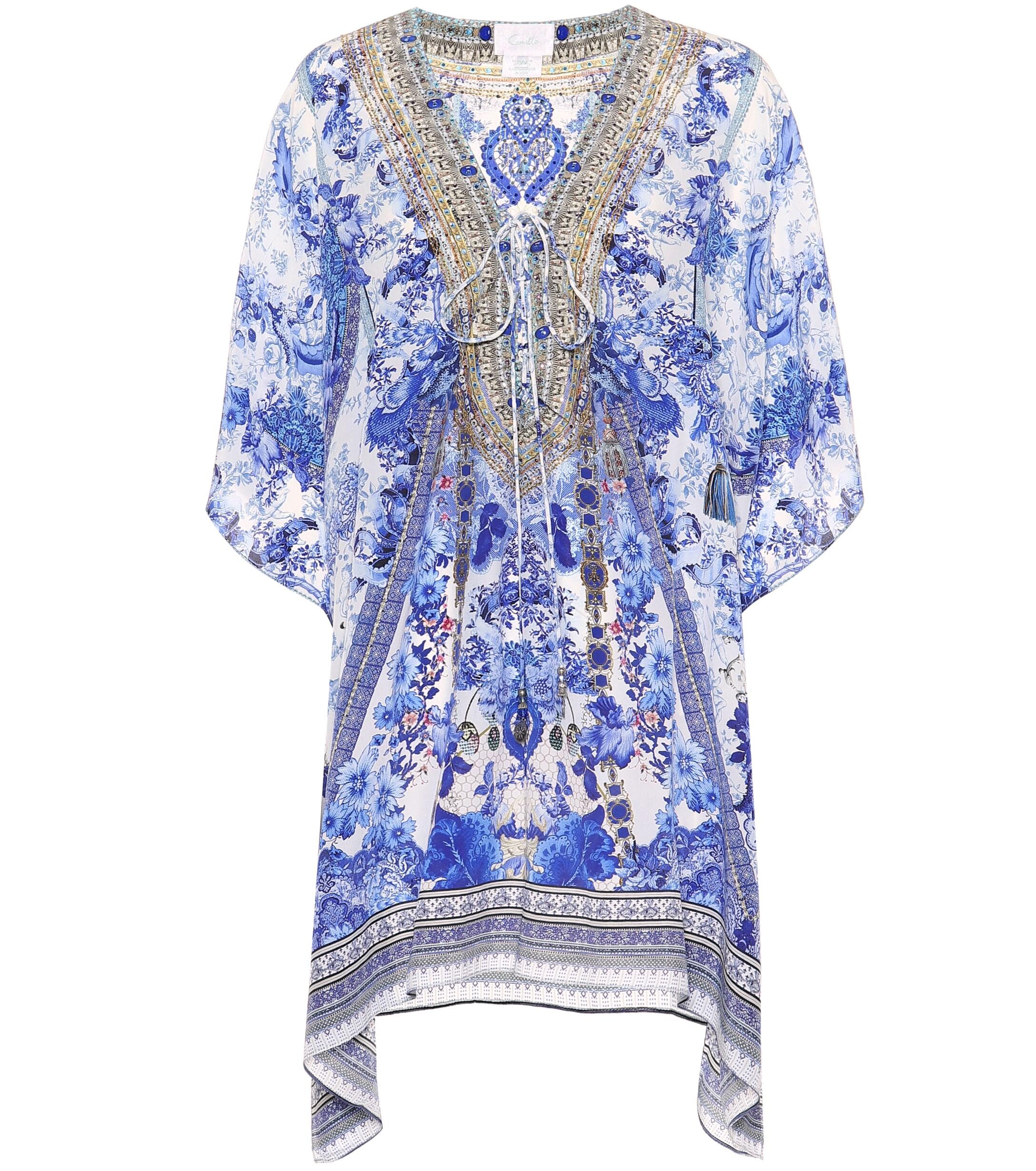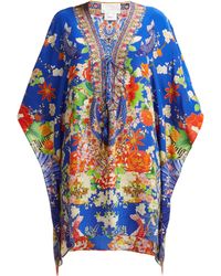 CAMILLA is inspired by provincial prints in this artfully decorated kaftan made from pure silk. Colour: blue