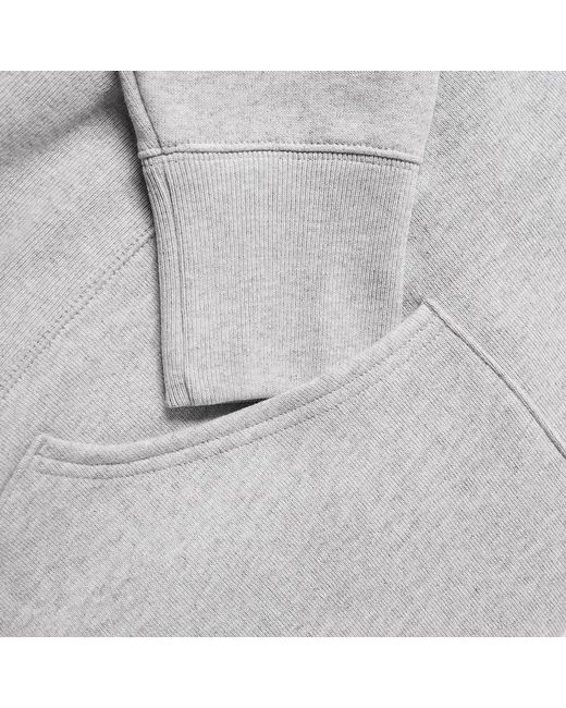 Long sleeve cotton-blend fleece hoodie in light grey. Off-white drawstring at hood. Logo embroidered in red and navy at chest. Kangaroo pocket at waist. Embroidered logo patch at lower sleeve. Rib knit cuffs, side-seams, and hem. Antiqued brass-tone hardware. Tonal stitching.