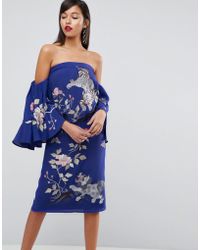 Dress by Chi Chi London, For that thing you RSVPd to, Off-shoulder design, Fitted waist, Floral print, High-low hem, Zip back, Regular fit, A standard cut for a classic shape. Big event on the agenda? We've got three words for you - Chi Chi London. The ultimate dress destination, our edit of the brand's dresses, heels and clutch bags ticks all the boxes on your party checklist. Prom queens and bridesmaid squads, we've got you. Polyester/ print/ satin/ silk.