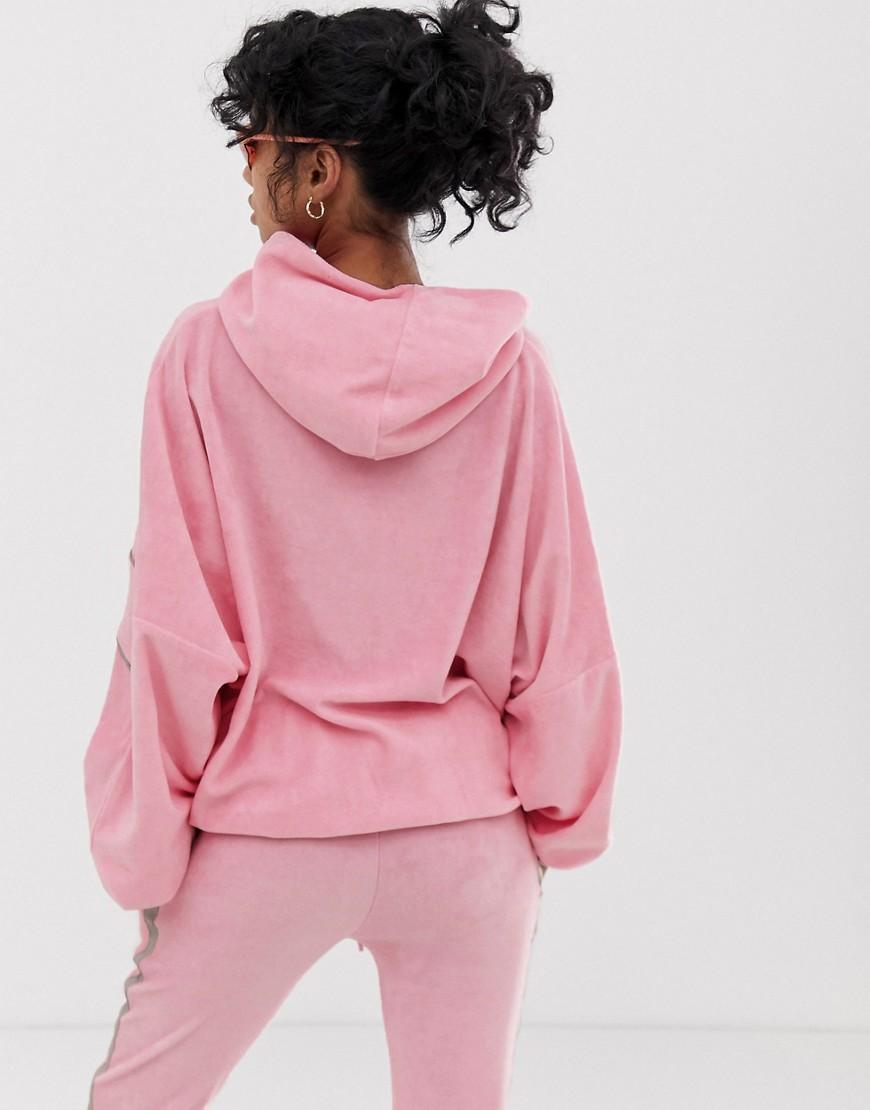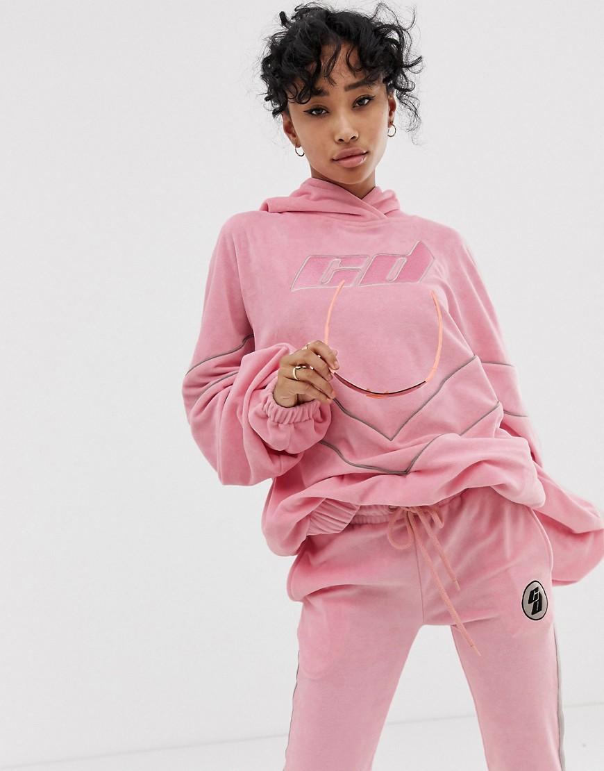 Go to ASOSHoodie by Criminal Damage, Part of a two-piece set, Mix and match, Fixed hood, Embroidered logo, Dropped shoulders, Stretch trims, Extreme oversized fit, More room for activities. East London label Criminal Damage put their unique stamp on streetwear and give it a trend-led edge. Slogan print t-shirts and sweats span the dark and macabre to the bright and bold with all-over prints or understated classic designs. Cotton/ polyester/ print/ velour/ velvet. Colour: pink