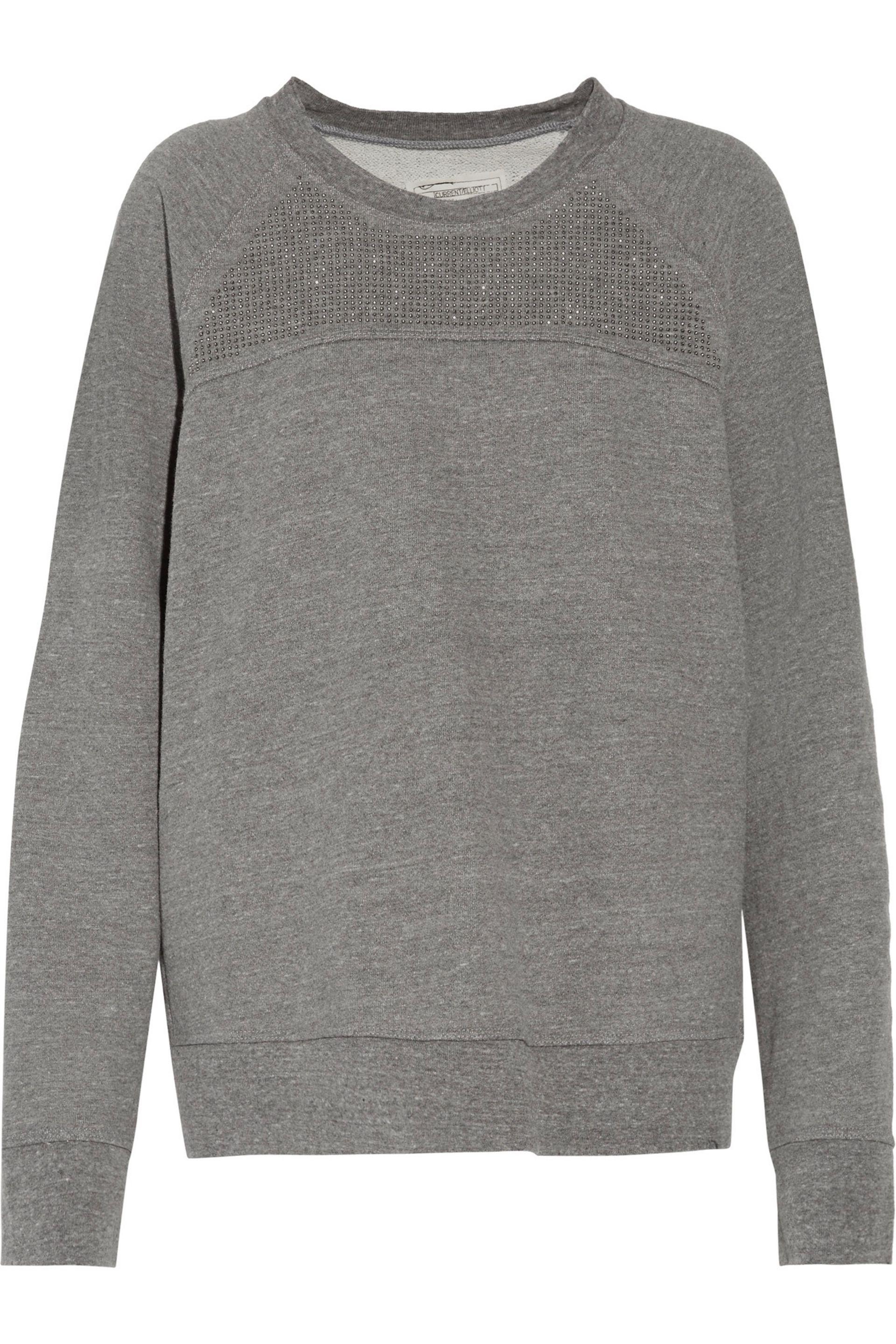 Go to THE OUTNET.COMCurrent/Elliott anthracite and white The Seamed sweatshirt. Marled cotton-blend. Raglan sleeves, stud-embellished front. Slips on. 59% cotton, 33% polyester, 8% rayon. Hand wash. Colour: grey