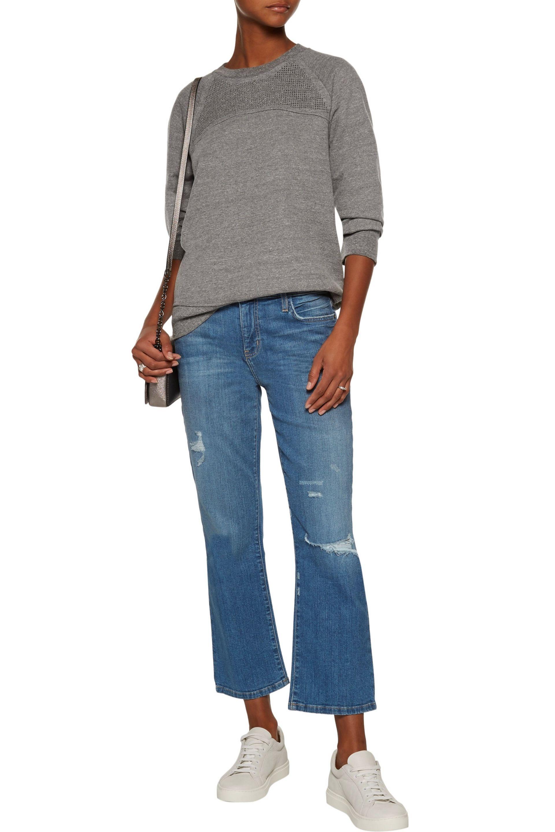The Seamed Stud-embellished Marled Cotton-blend Sweatshirt Anthracite