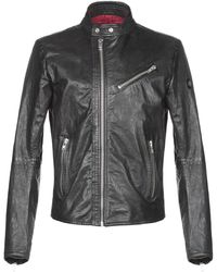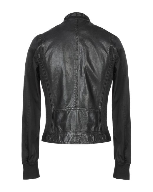 Techno fabric, leather, no appliqués, solid colour, single-breasted , zip, round collar, multipockets, long sleeves, fully lined, contains non-textile parts of animal origin, biker style. 100% Sheepskin, Polyester. Colour: black