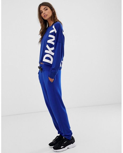 Joggers by DKNY, Part of a co-ord set, For a matchy-matchy look, Drawstring waistband, Side pockets, Fitted branded cuffs, Slim fit, A narrow cut that sits close to the body. An iconic brand for as long as we can remember, DKNY designs fail-safe pieces for work, play, and everything in-between. Created by fashion legend Donna Karan, the label serves up Big-Apple-inspired garms, with logo-stamped loungewear as well as sleek watches and sunglasses. We've picked some of the brand's super-fresh fragrances, too ' expect fruity, sweet and spicy scents. Spritz and enjoy, people. Cotton/ spandex. Colour: blue
