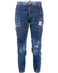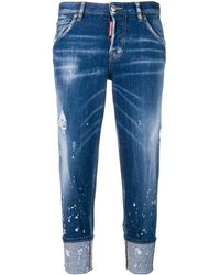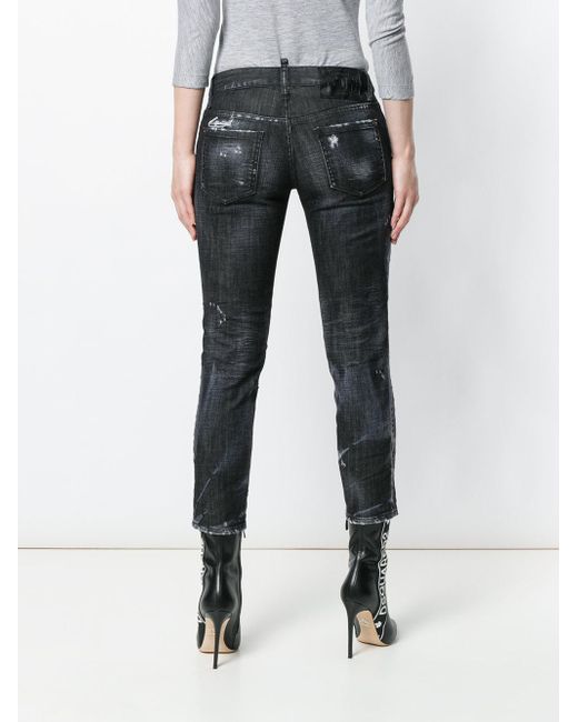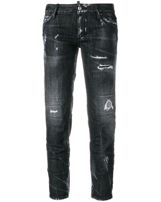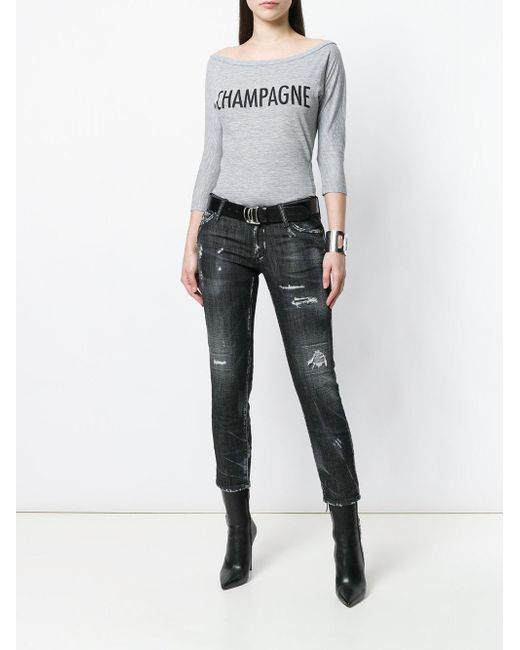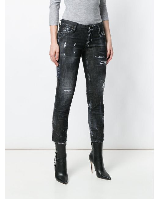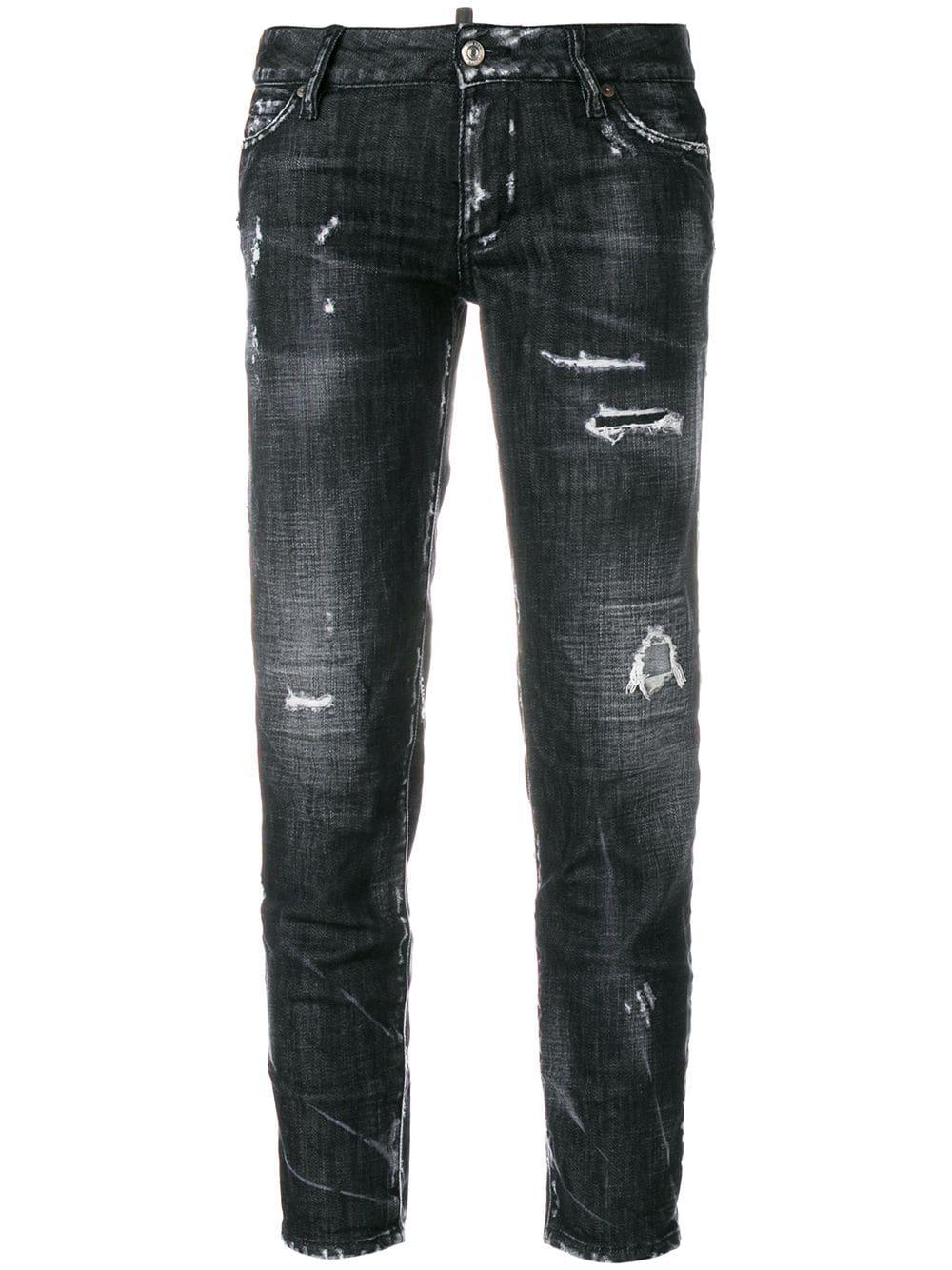 DSQUARED2 shirt offers a casual yet stylish approach to female dressing. Crafted from a cotton blend, these grey cropped distressed jeans from DSQUARED2 feature a slim low rise silhouette that's complemented by all-over distressing. Finished with whiskering at the thigh and a bleached effect, this pair is a wardrobe essential you'll reach for over and over again. Colour: black