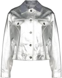 Sequins, contrasting applications, solid color, single-breasted , zip, lapel collar, multipockets, long sleeves, zipped cuffs, fully lined, contains non-textile parts of animal origin, lamé. 100% Cowhide.