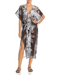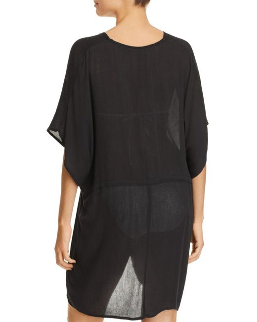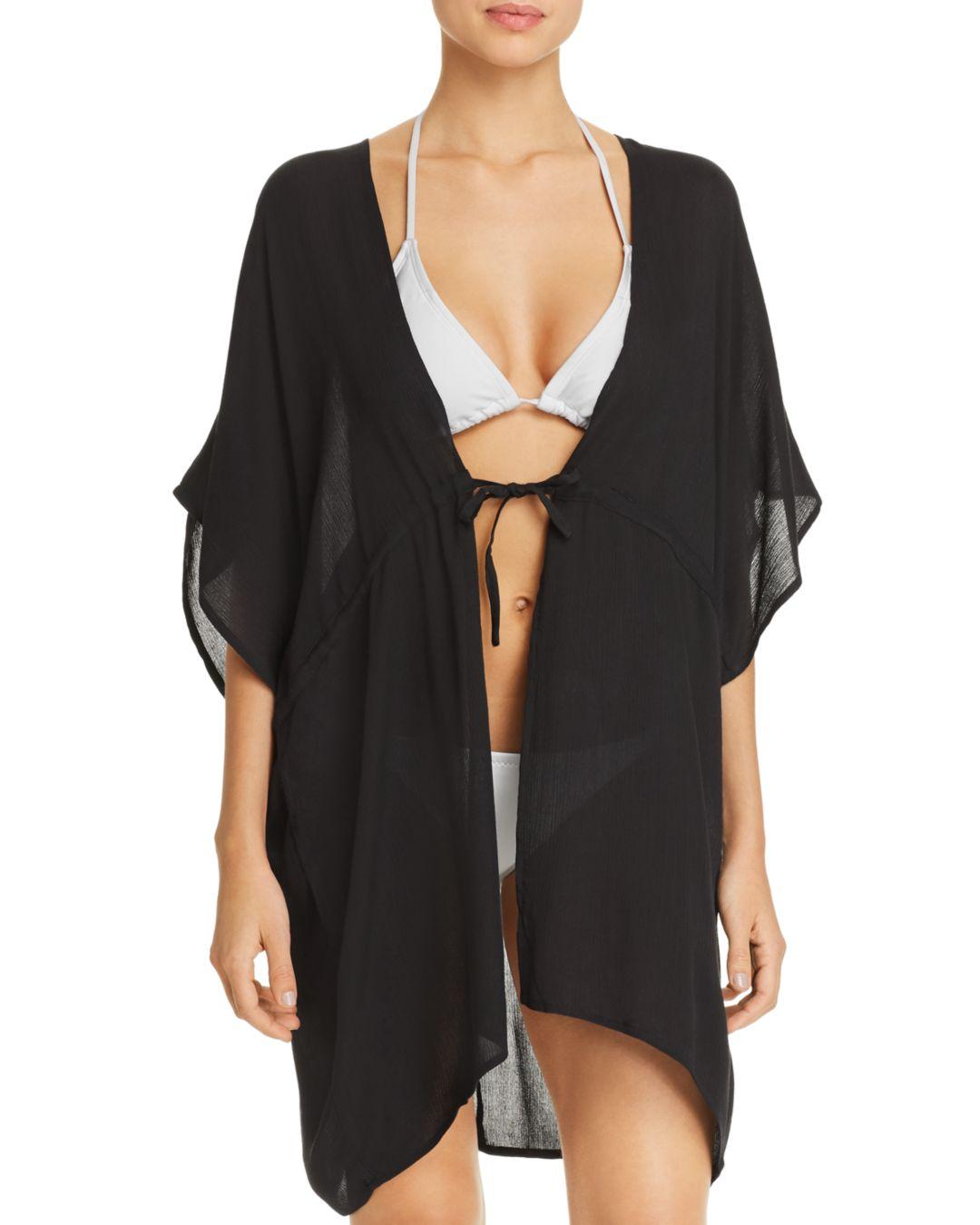 Fits true to size, order your normal size. Open-front design, waist ties at front, semi sheer. Allover crinkled texture. Model measurements: 5'10" height, 33.5" bust, 23.5" waist, 34.5" hips. Viscose. Hand wash. Made in india. Colour: black