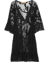 Women's Ruffled Printed Silk-blend Georgette Kaftan Black